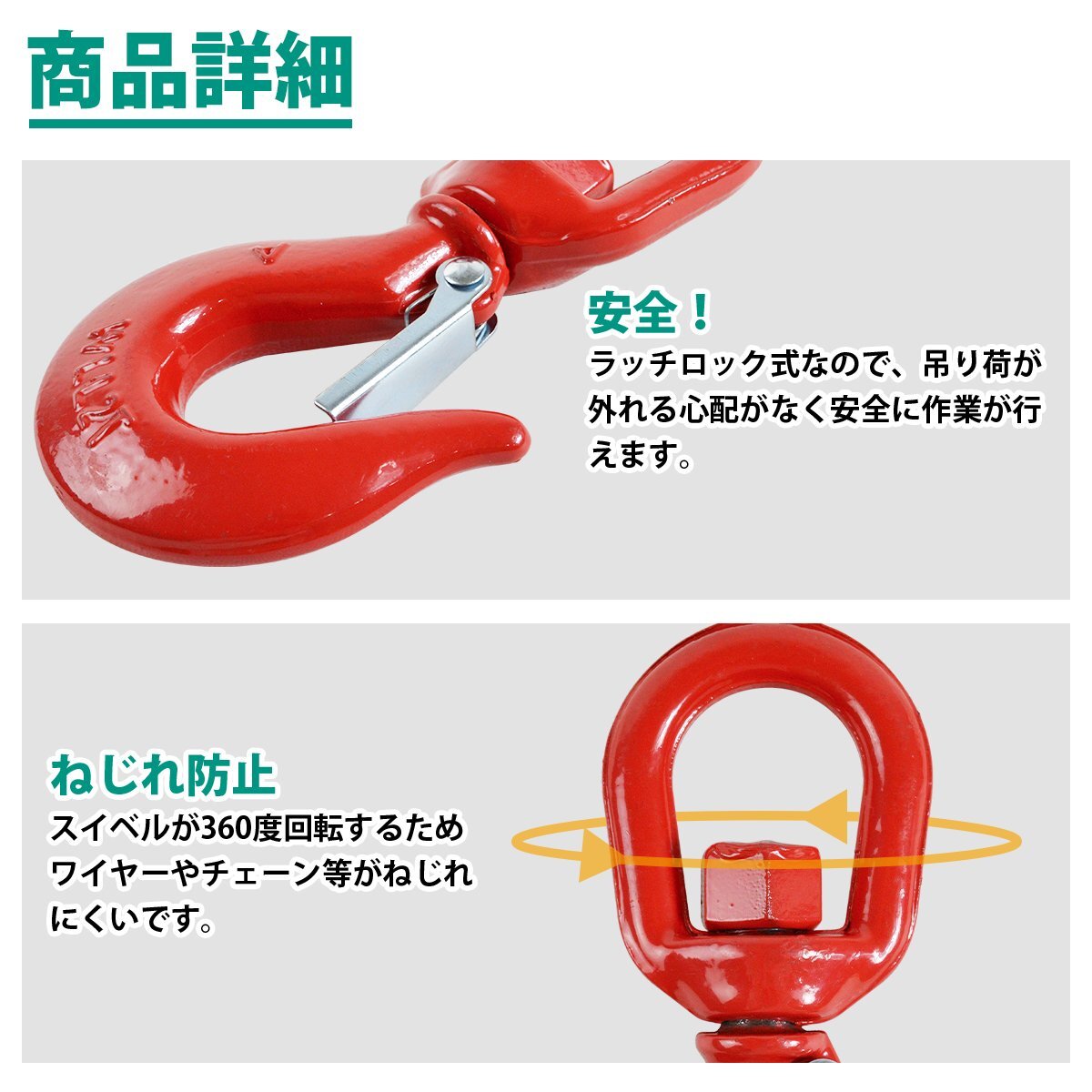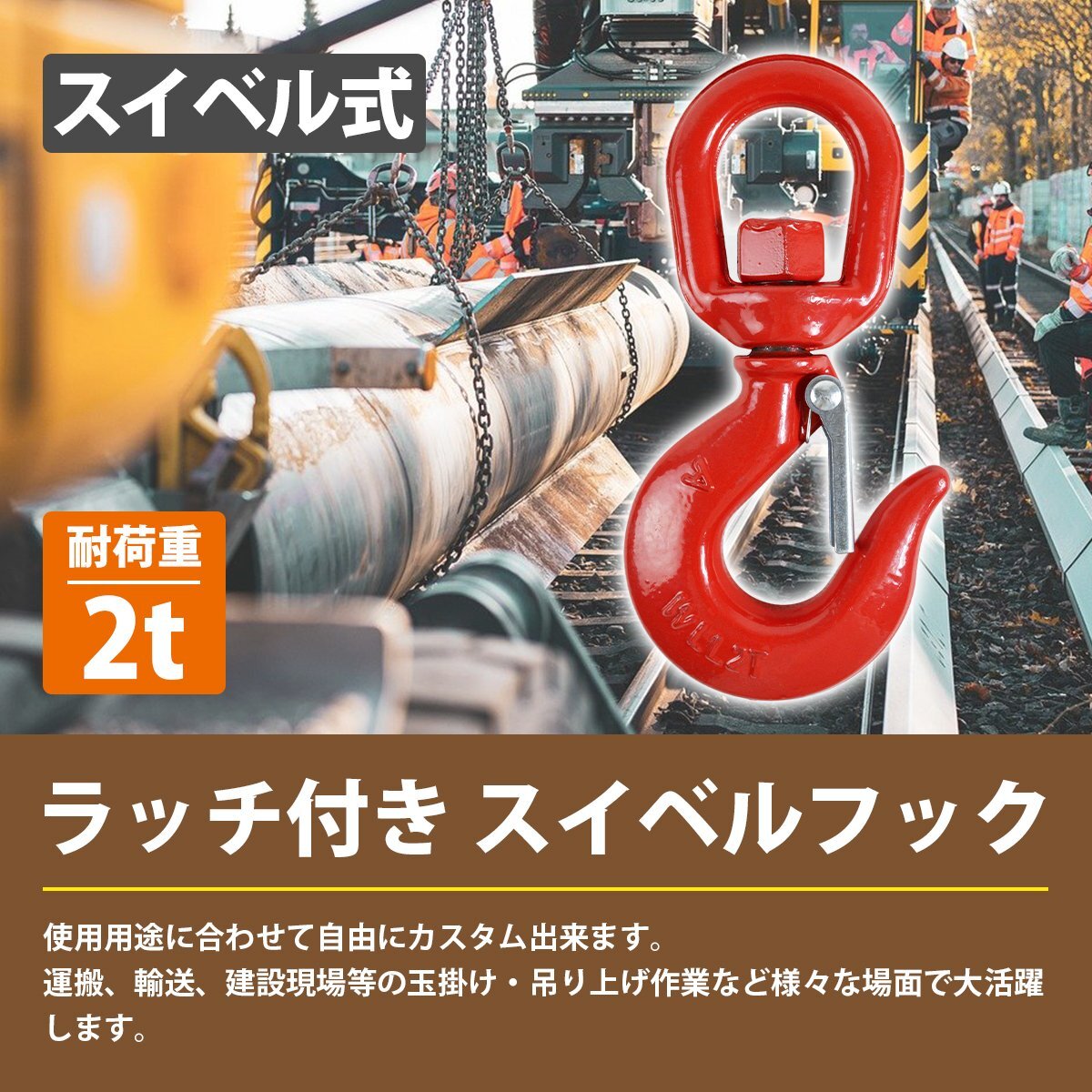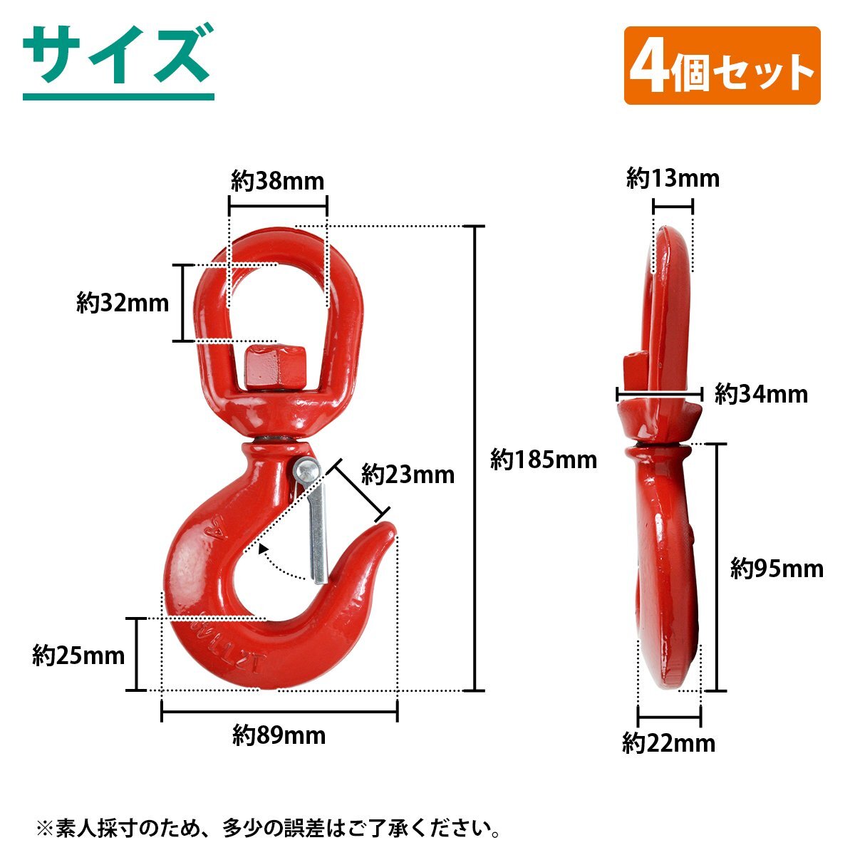 [4個セット] 回転 スイベルフック 2t 2000kg 吊りフック セルフ ロッキング フック 吊り具 スイベル フック 重量 吊り 金具