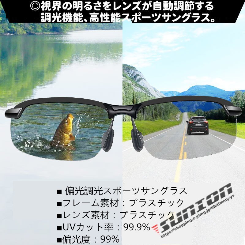 【商品特徴】◎乱反射をカットし抜群の視界を実現する偏光機能に◎視界の明るさをレンズが自動調節する調光機能、高性能スポーツサングラス。◎ゴルフやマラソン、野球等の長時間のアウトドアスポーツにおすすめします。■ 釣り用偏光グラス■フレーム素材:プラスチック■レンズ素材:プラスチック■UVカット率:99.9%■偏光度:99%■セット内容:商品写真ページーにてご確認下さい。■シーン:ゴルフ ドライブ 運転 釣り フィッシング ランニング ジョギング マラソンサイクリング ロードバイク 野球 テニス 旅行 スポーツ用サングラス