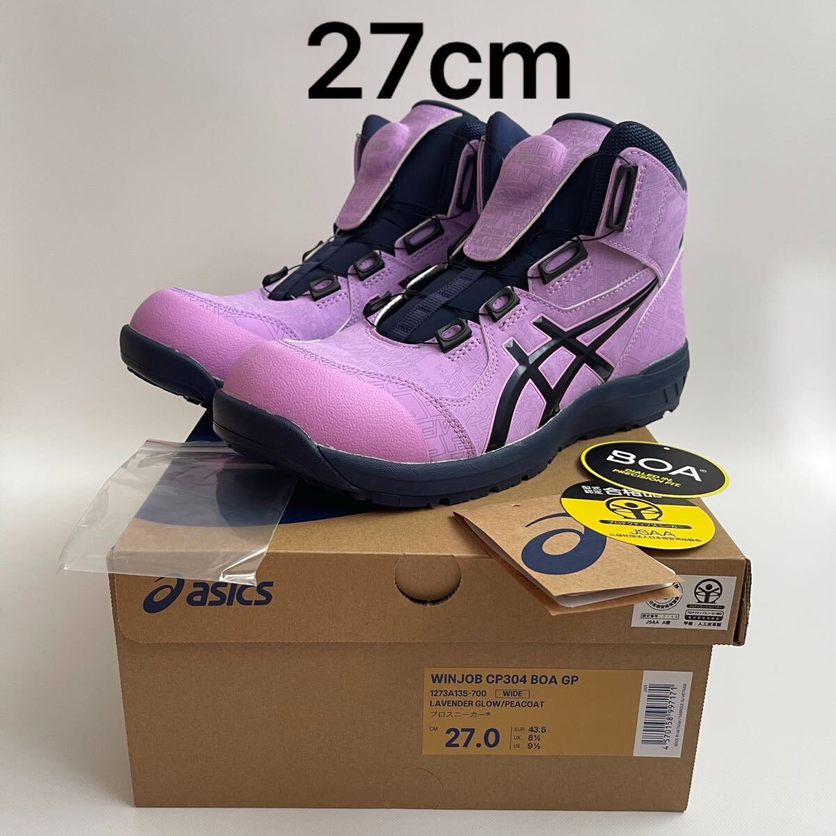 新品 27cm asics ウィンジョブ CP304 BOA GP 3E相当 安全靴 作業靴 アシックス ラベンダーグロー×ピーコート ハイカット 1273A135-700