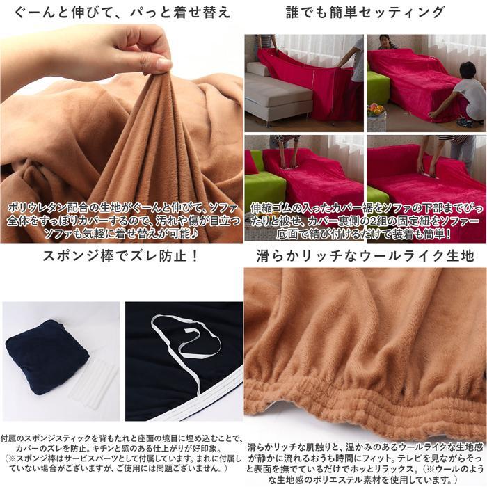 ・ポリウレタン配合の生地がぐーんと伸びて、ソファ全体をすっぽりカバーするので、汚れや傷が目立つソファも気軽に着せ替えが可能♪