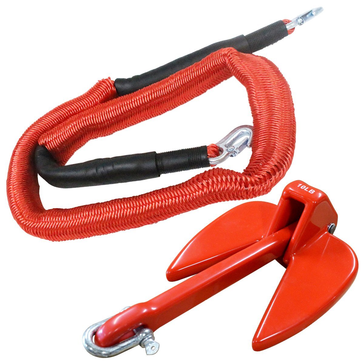 【送料無料】『伸縮ロープ/アンカーセット』爪型 アンカー 10LBS 4.5kg 赤 レッド 6M フロート のびのび アンカー ロープ 赤