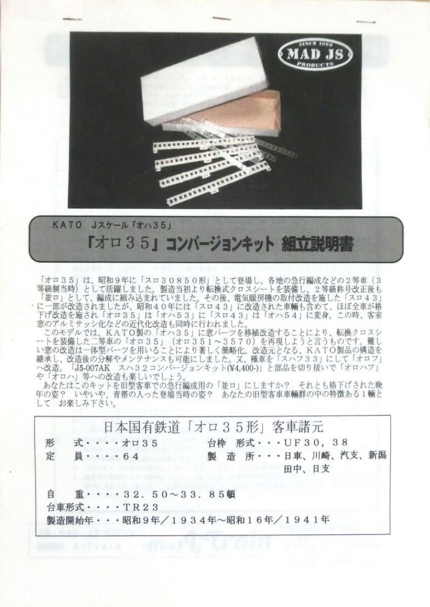 改造パーツと種車になるオハ35(KATO) が2輌分あります。