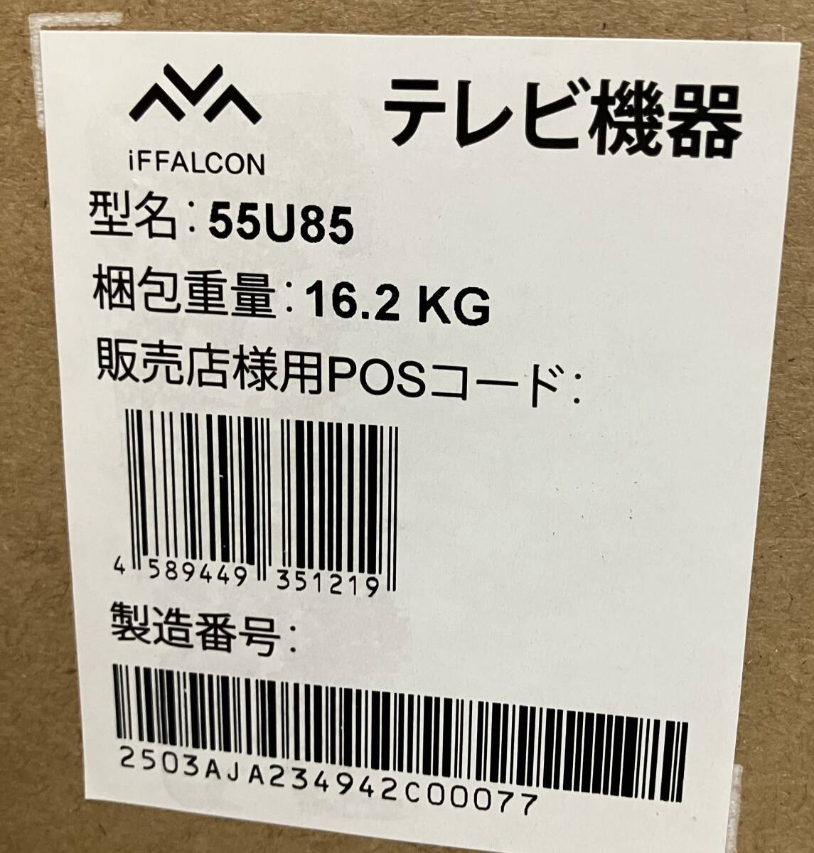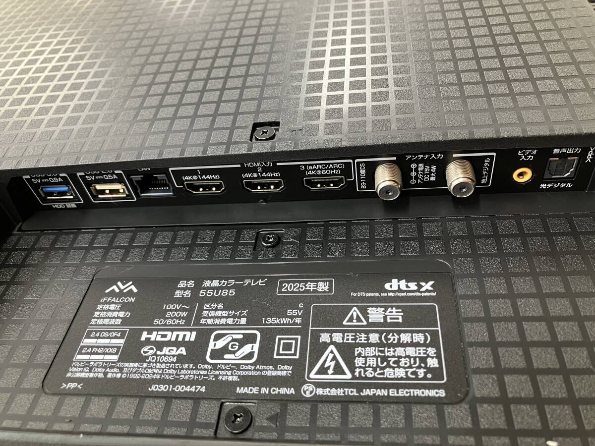 iFFALCON 4K 液晶 Mini LED 55V型 テレビ 倍速 Google TV 55U85 AI映像補正 1000nit 高輝度 144Hz VRR Dolby Vision IQ Dolby Atmos DTS Virtual:X HDR10+ AirPlay2 クロームキャスト 音声検索 裏番組録画 Wチューナー ゲームモード HDMI2.1 VESA規格