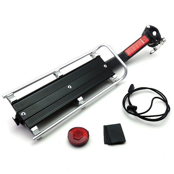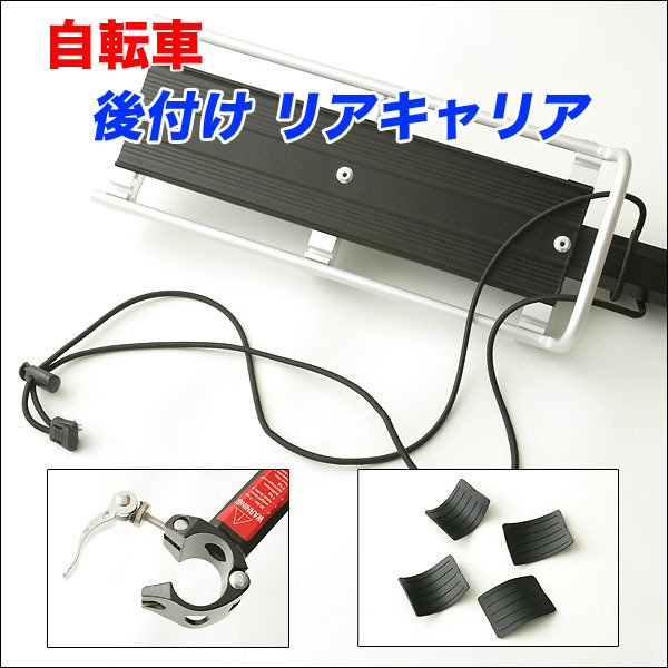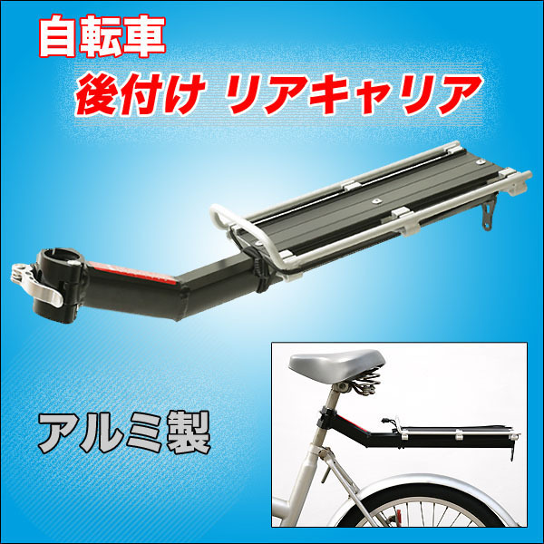 商品説明 | シートポストに簡単取付けできる後付けリアキャリア 貴方の愛車を便利にカスタムします♪ スポーツタイプの自転車はかっこ良いけれど荷物が乗らない・・・そんな時におすすめ! 総アルミ製の荷台は荷物を固定できるゴムひもが付いているので便利です また雨の日の泥除けとして 全長:約47cm×約12cm 天板 全長:約28cmx幅約12cm 取り付け可能シートポスト径:約3cm ※付属のゴムで調節可能 耐荷重:約9kg |