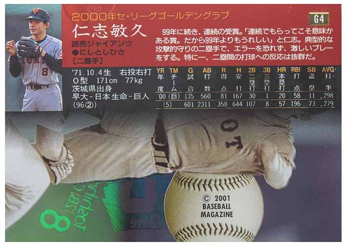 即決! 2001 BBM 2000 Golden Glove #G4 仁志 敏久 挿入 カード