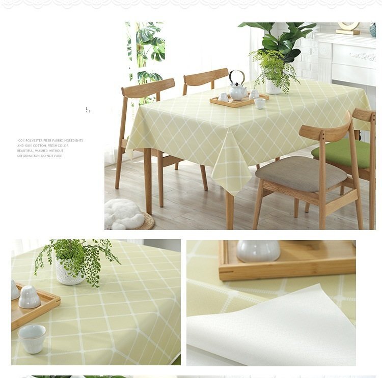 テーブルクロス 黄色格子柄 PVC製 防水 防油 加工 長方形 152cm×137cm ランチョン ティーマット テーブルリネンセットI-003
