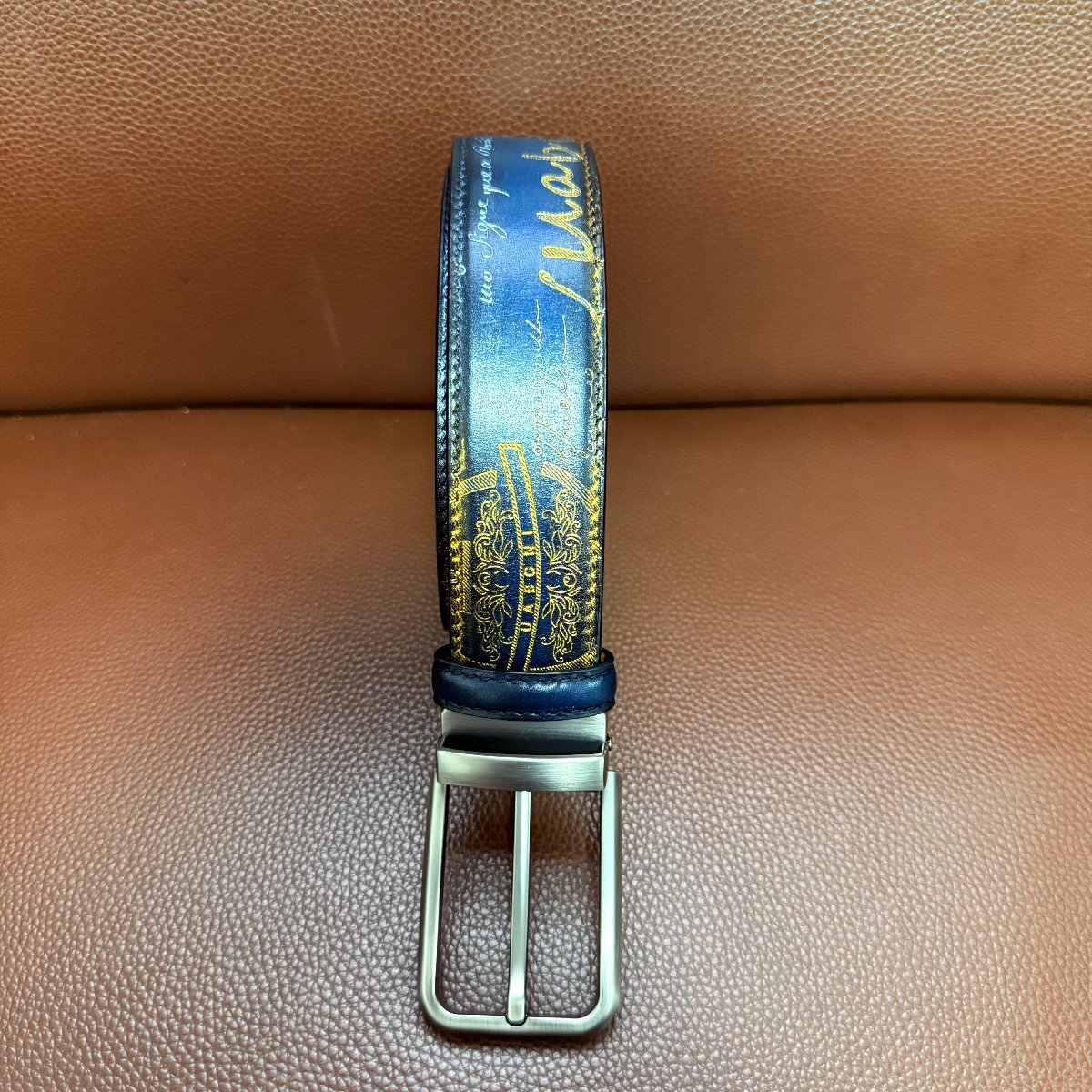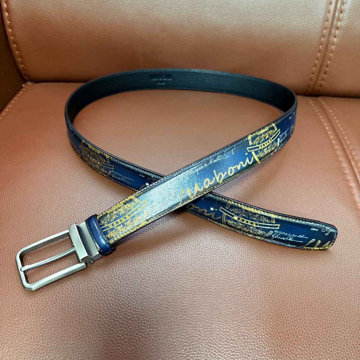 貴重品 EU製 定価9万◆UABONI*ユアボニ*幻のパティーヌ*ベルト◆本革 レザー カーフスキン 手染 ゴールデン 調節可能 スーツ ビジネス 紳士用