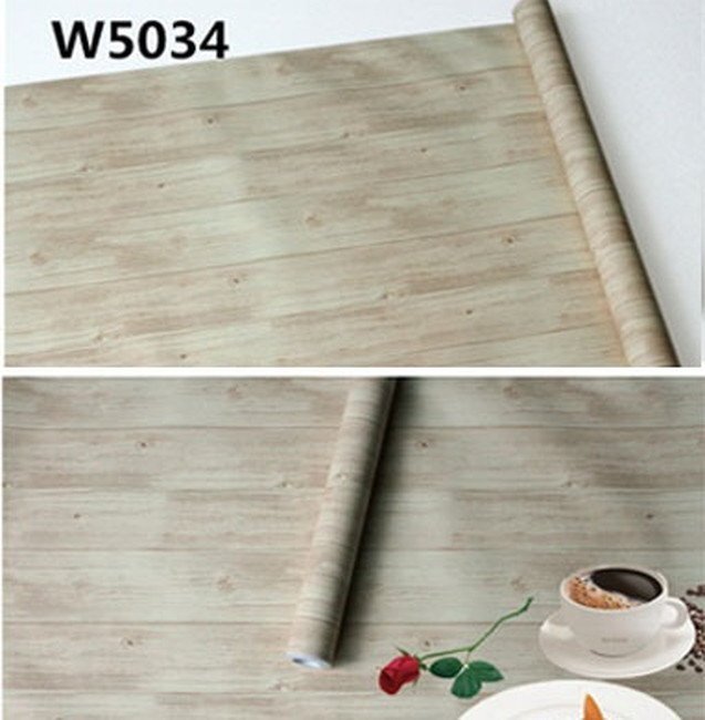 【50m 】木目調 ベージュ w5034 壁紙シール アンティーク 木目 リメイクシート 板 柄 ウォールステッカー 防水 45cm×50m はがせるタイプ