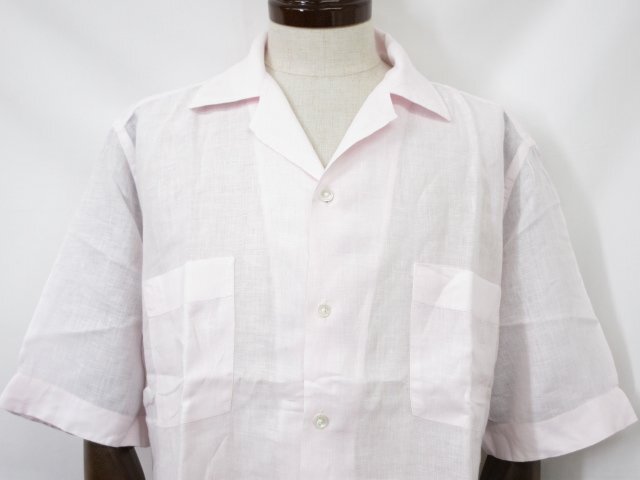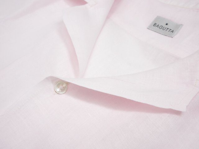 超美品【BAGUTTA バグッタ】NEW MAUI GMT 11028 リネン100% 半袖 オープンカラーシャツ (メンズ) sizeL ライトピンク系 ◇17MK6259◇
