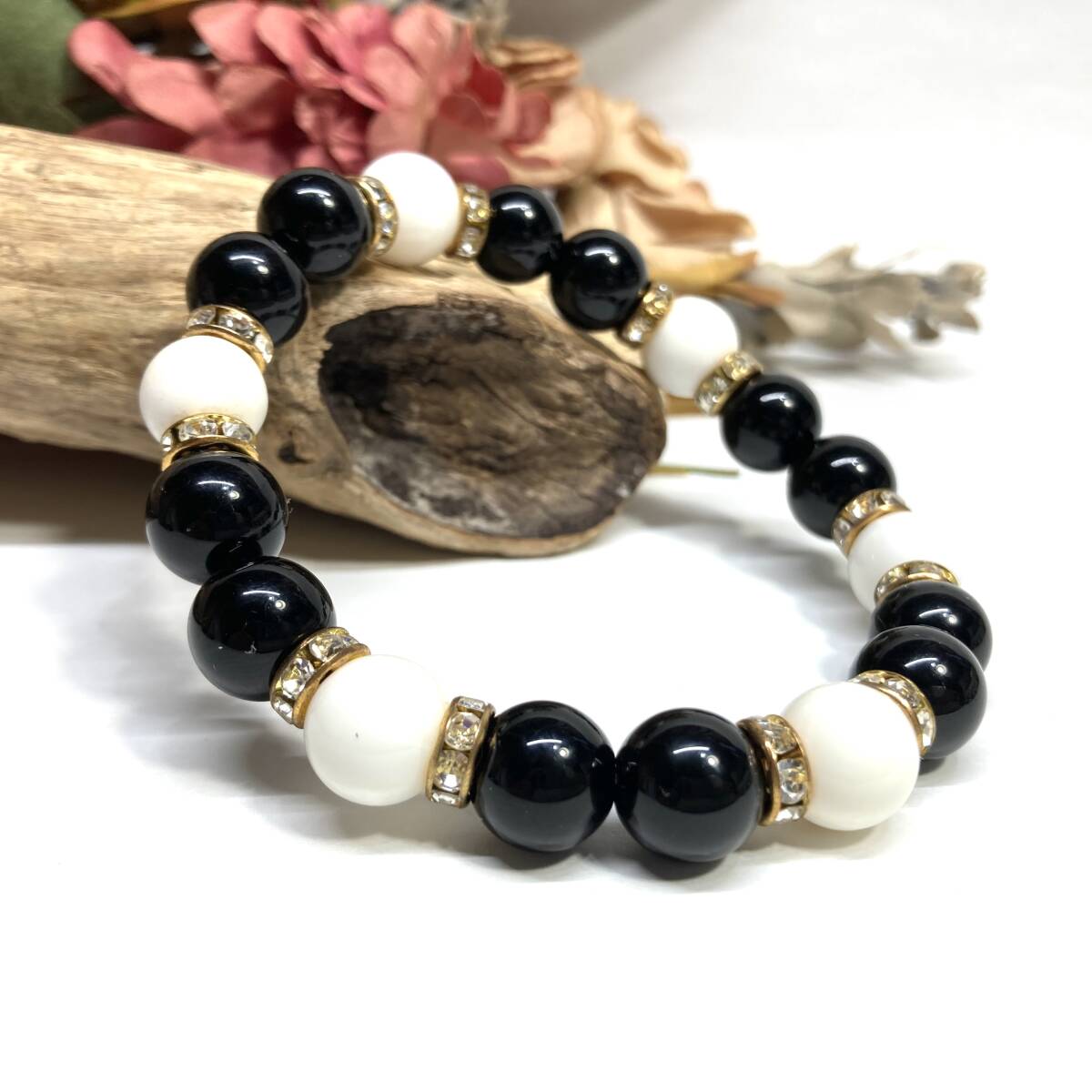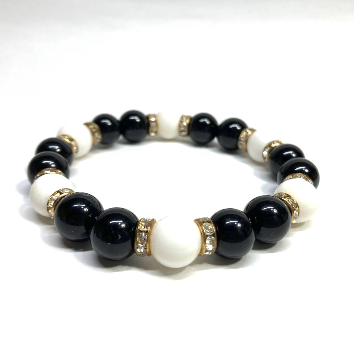 こちらは、モリオンとホワイトオニキスを組み合わせたパワーストーンブレスレットです。間にはロンデルを挟み高級感あるデザインに仕上げております。石大きさは腕にも馴染みやすいように10mm玉で内径約18cm(伸可能)です。(サイズ変更の場合は取引ナビにてご連絡をお願いします。) 数に限りがございますので気になる方はお早めにどうぞ。