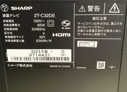 SHARP AQUOS 液晶テレビ 2023年製 2T-C32DE 32inch