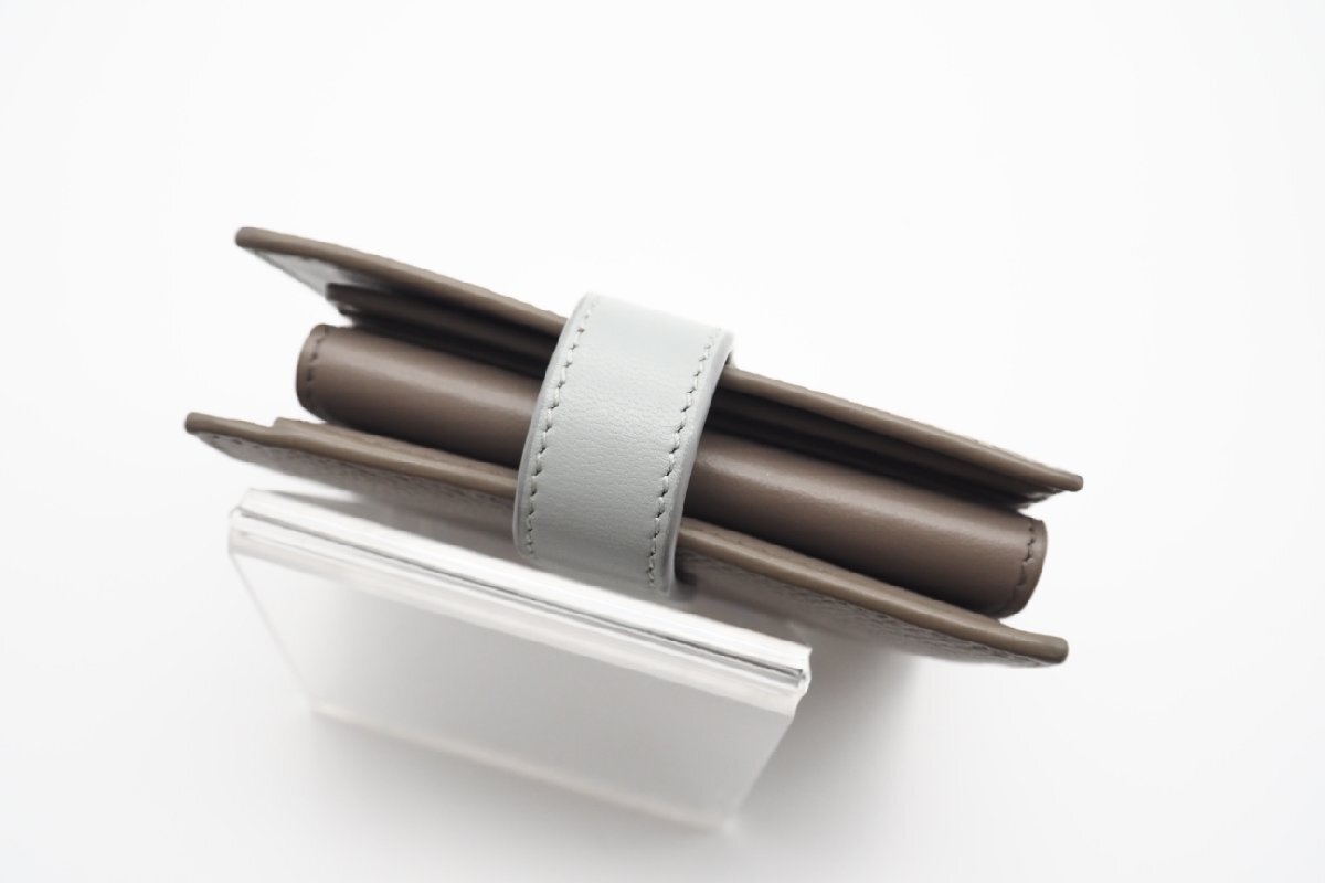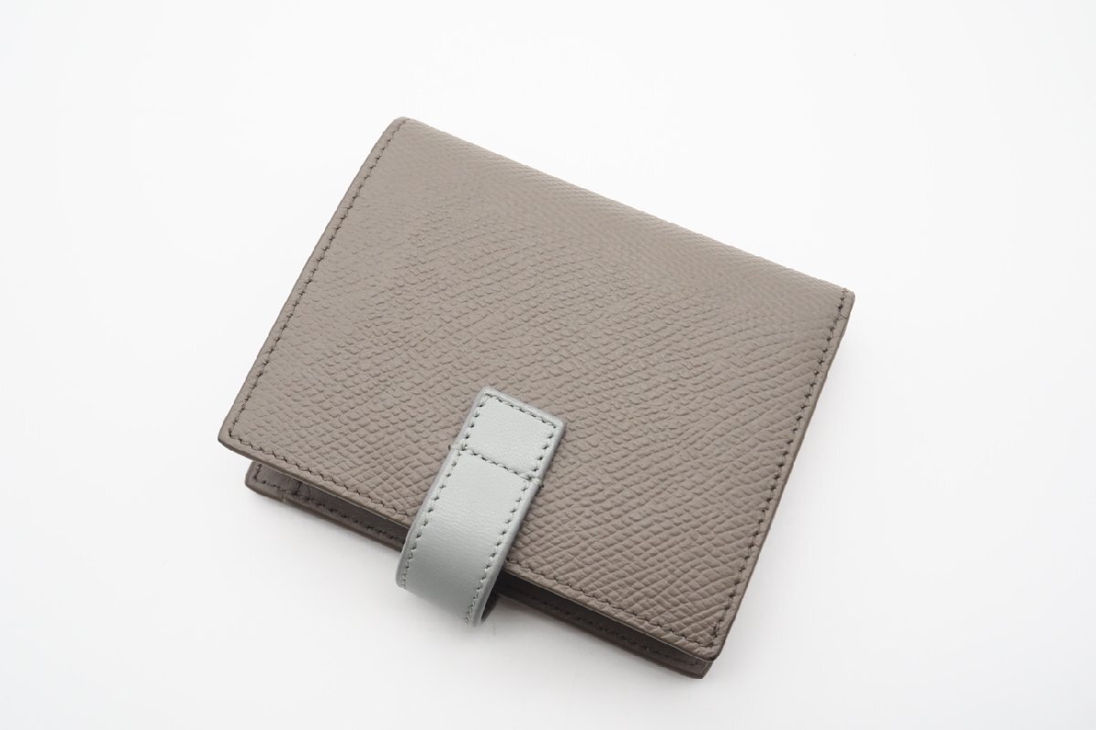 品名 | グレインドカーフスキン ミディアム ストラップウォレット バイカラー ブルー グレー | |