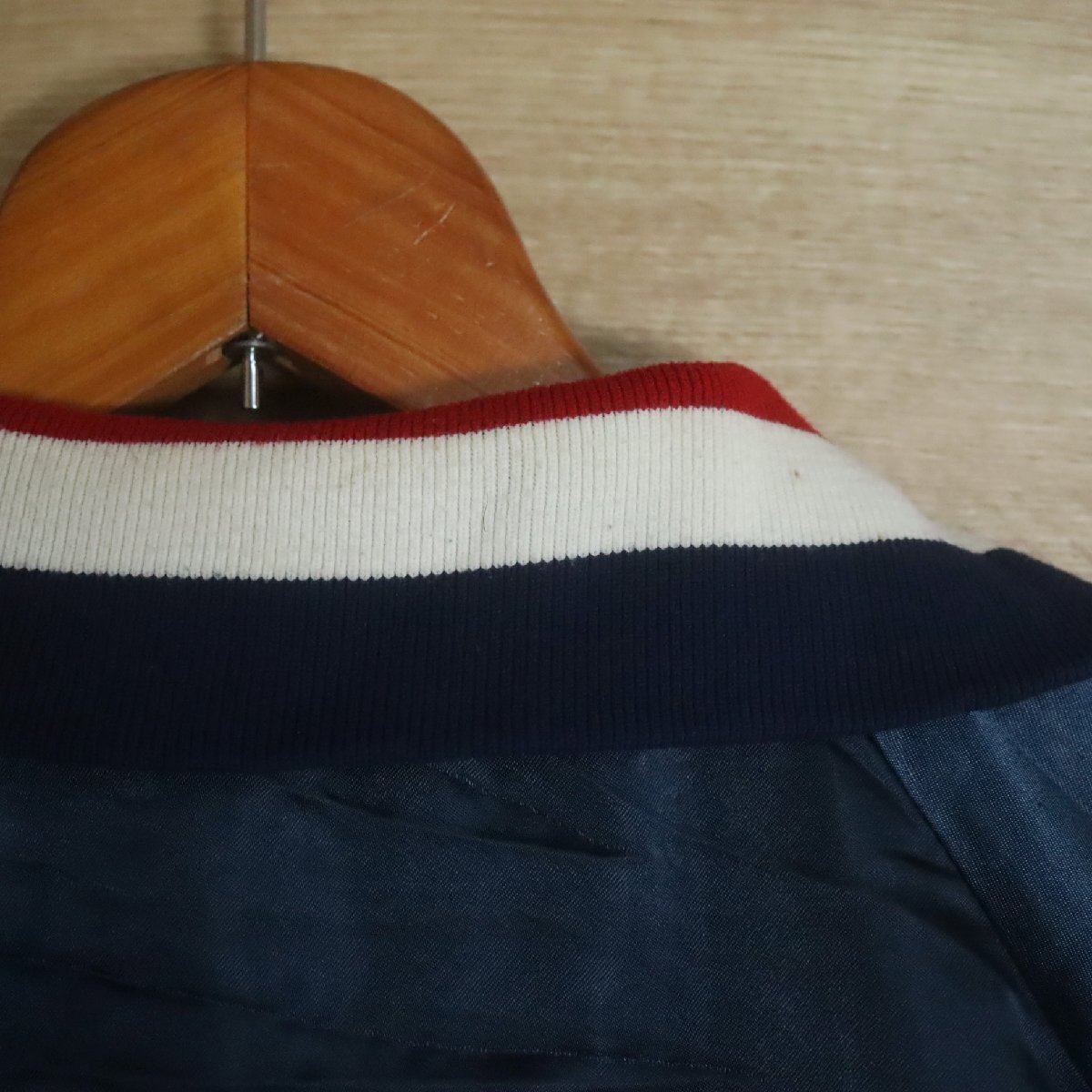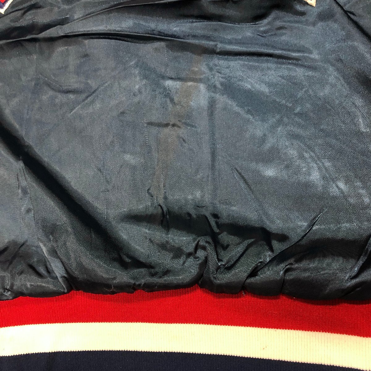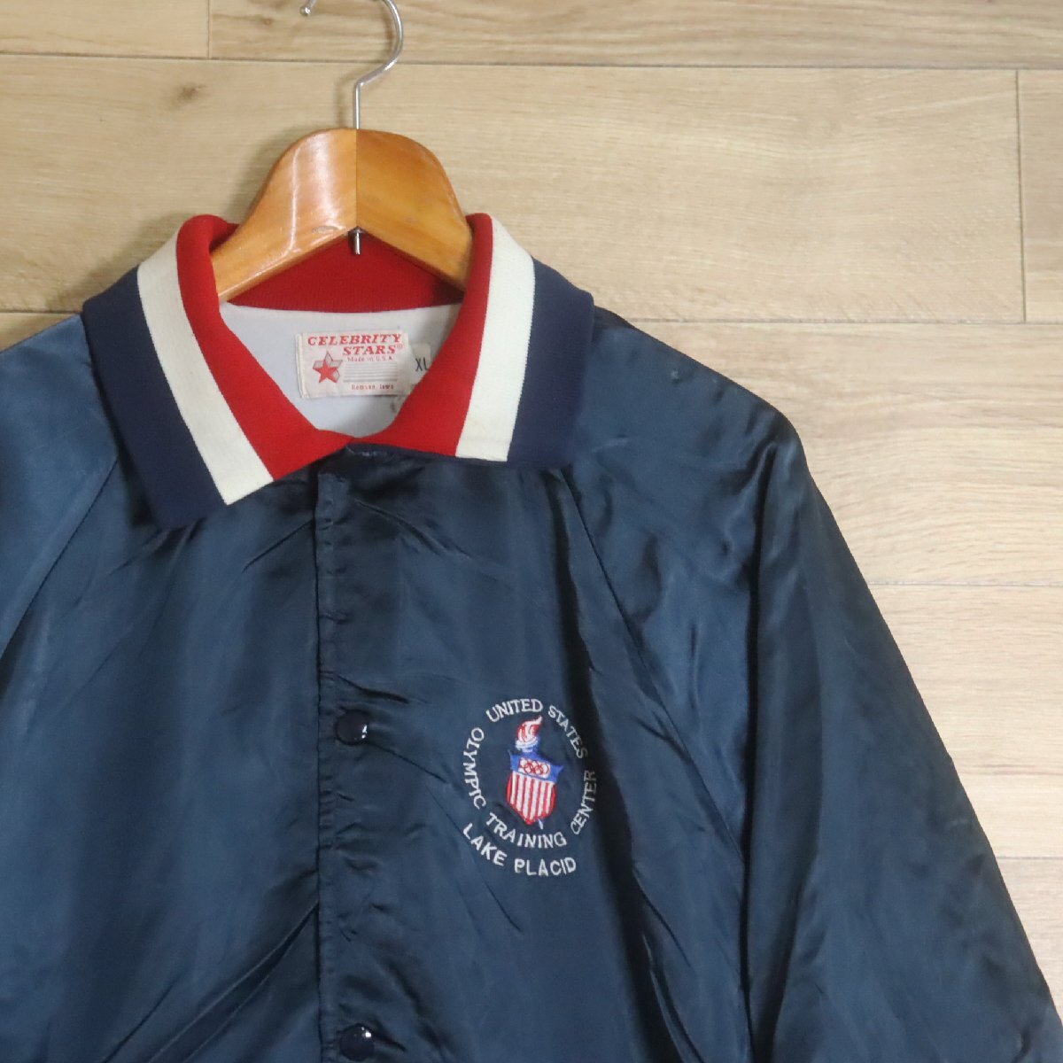 F9R/R7.29-3 80s ビンテージ USA製 CELE BITY STARS ナイロンスタジャン アワードジャケット 刺繍 ブルゾン XL メンズ ネイビー