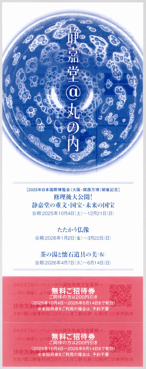 静嘉堂文庫美術館 無料ご招待券 | |||||||||