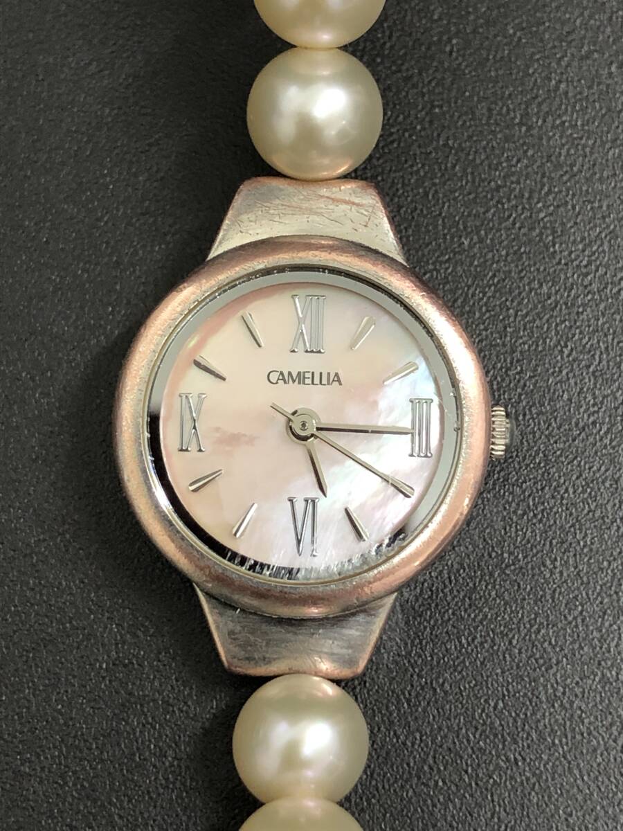 【現状品】CAMELLIA カメリア パールウォッチ 72176 レディース クオーツ パール7㎜ シェル文字盤