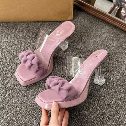 スリッパ オープントゥ ハイヒール 【37】23.5cm パープル