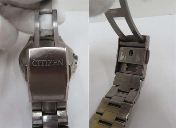 商品説明 | □ブランド:CITIZEN シチズン □モデル名: ECO-DRIVE エコドライブ □型番: H804-T018696 DURATECT □ムーブメント:ソーラー式(Eco-Drive) □腕回り(約):17cm(素人採寸ですので参考程度で) □付属品:なし、ベルトのコマもありません。写真に写っている物のみです。 □動作:簡易動作確認済み。 □状態:中古品の為、スレ・小キズ・汚れ等が多少ありますので、ご了承ください。 ◇出品している商品は引取りした商品です。購入店、購入日、購入価格など不明ですのでご了承ください。 ●この商品は記載のない不備、初期不良の場合返品をお受けします。中古品に関してはキズ汚れは対象外と致します。 ※商品到着後5日以内かオークション終了後10日までのどちらか早い方が保証期間。ただし、商品を返品していただき確認後のご返金になります。 |