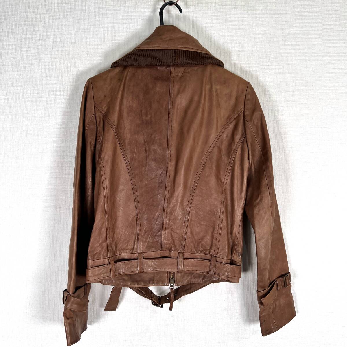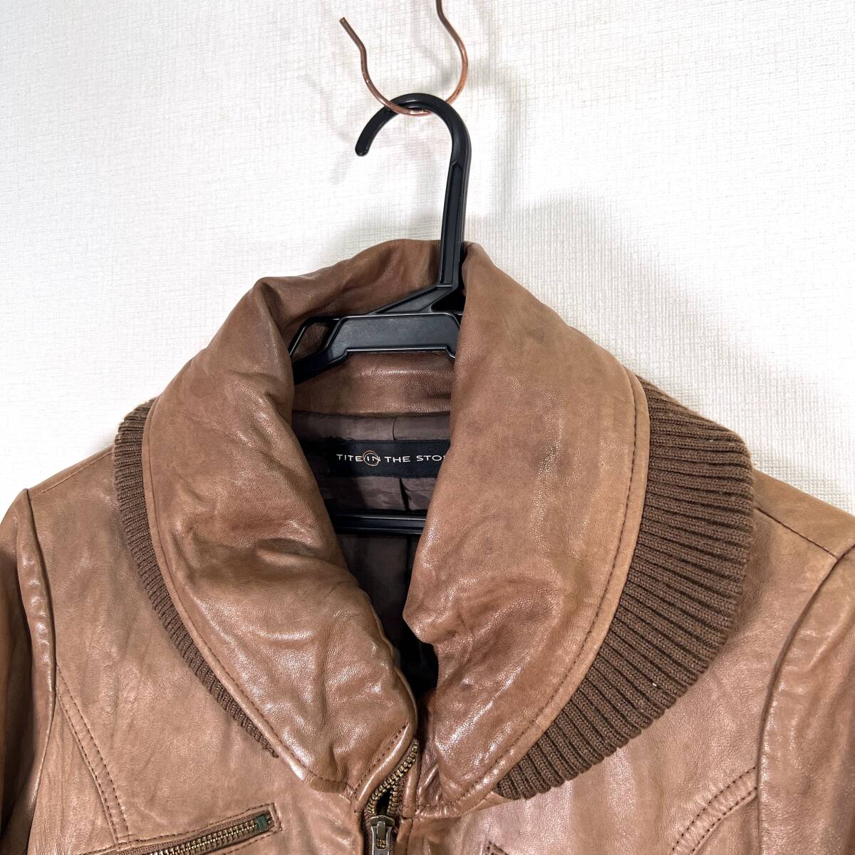 女性用 レディースのブラウン系のレザージャケット 革ジャン 本革ジャケット レザーコート アウターです。中古品のため、数カ所に傷やシミ、汚れがありますが、いい味出ており、まだまだご着用いただけます。古着 ティテインザストア 株式会社ジオン商事