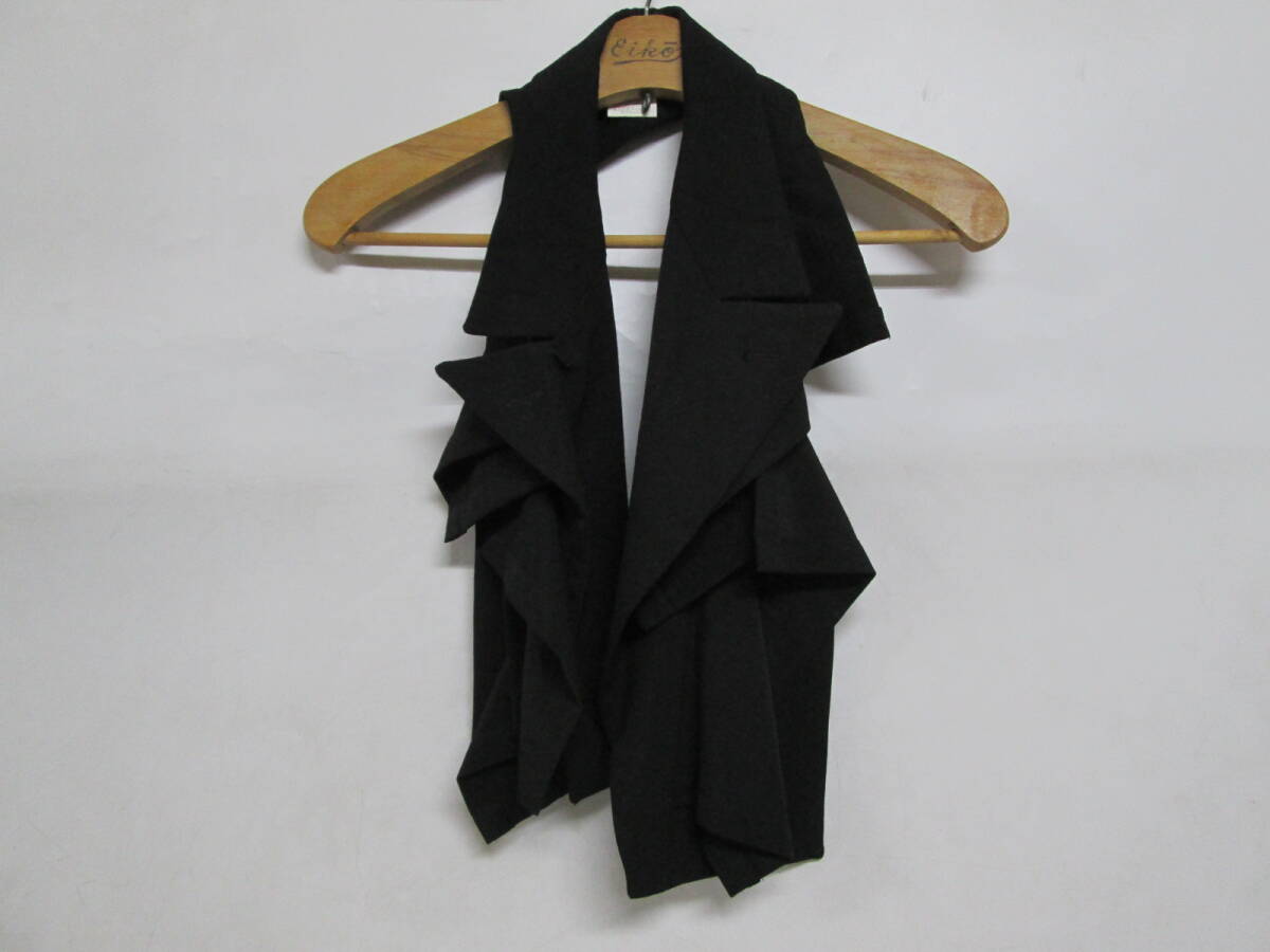 【1008n O19757】 COMME des GARCONS コムデギャルソン テーラードカラー 付け襟 変形 ジレ ブラック フォーマル アシンメトリー 毛100%