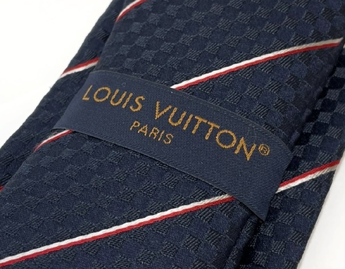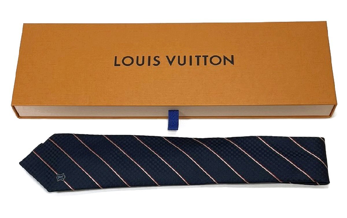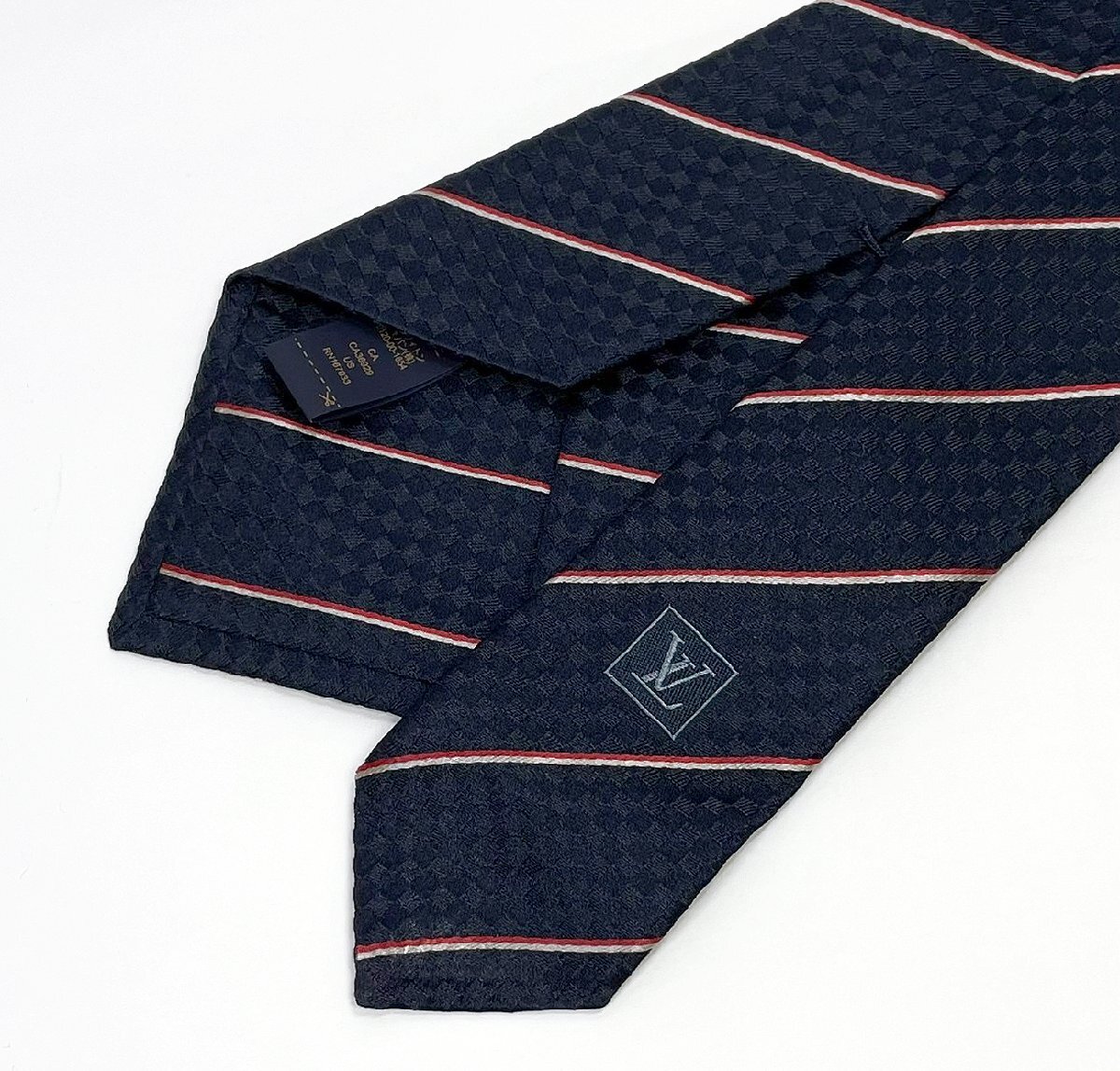 未使用 LOUIS VUITTON M78755 クラヴァット・エク マリーヌ 8cm ルイヴィトン ネクタイ ダミエ ストライプ
