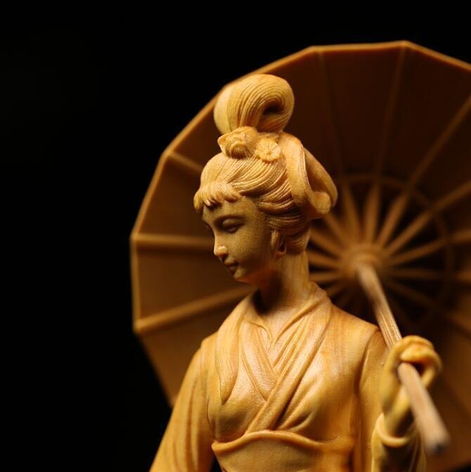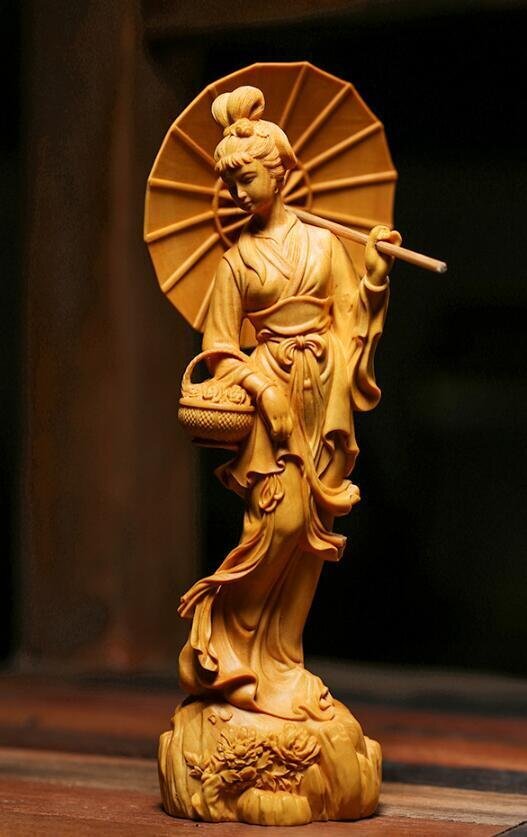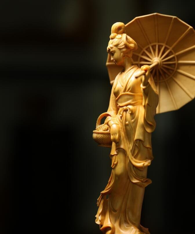 【黄楊木彫り】江南霧雨飾り物 /美姫飾り物/実心 / 質感/寝室/書斎/リビング オフィス置物/彫刻工芸品
