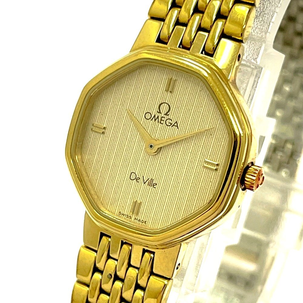 【1円スタート】OMEGA オメガ デビル GP×SS ゴールド系文字盤 クオーツ レディース腕時計 492667