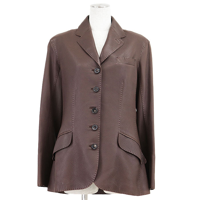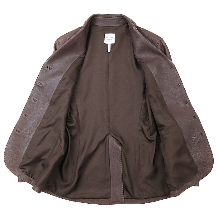 シリーズHERMES エルメス レザージャケット テーラード ディアスキン 鹿革 センターベント ノッチドラペル 本切羽 レディース 44 茶色 フランス製