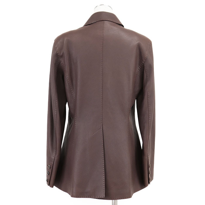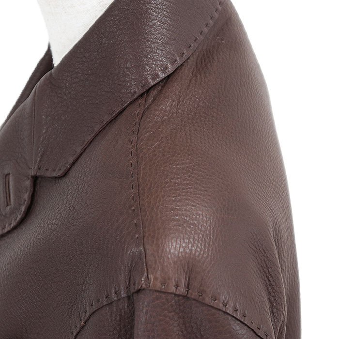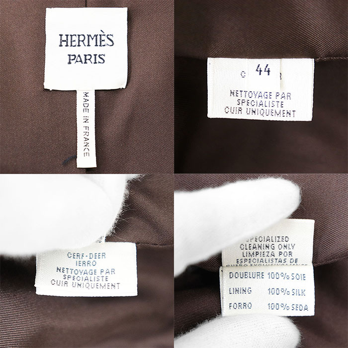 HERMES エルメス レザージャケット テーラード ディアスキン 鹿革 センターベント ノッチドラペル 本切羽 レディース 44 茶色 フランス製