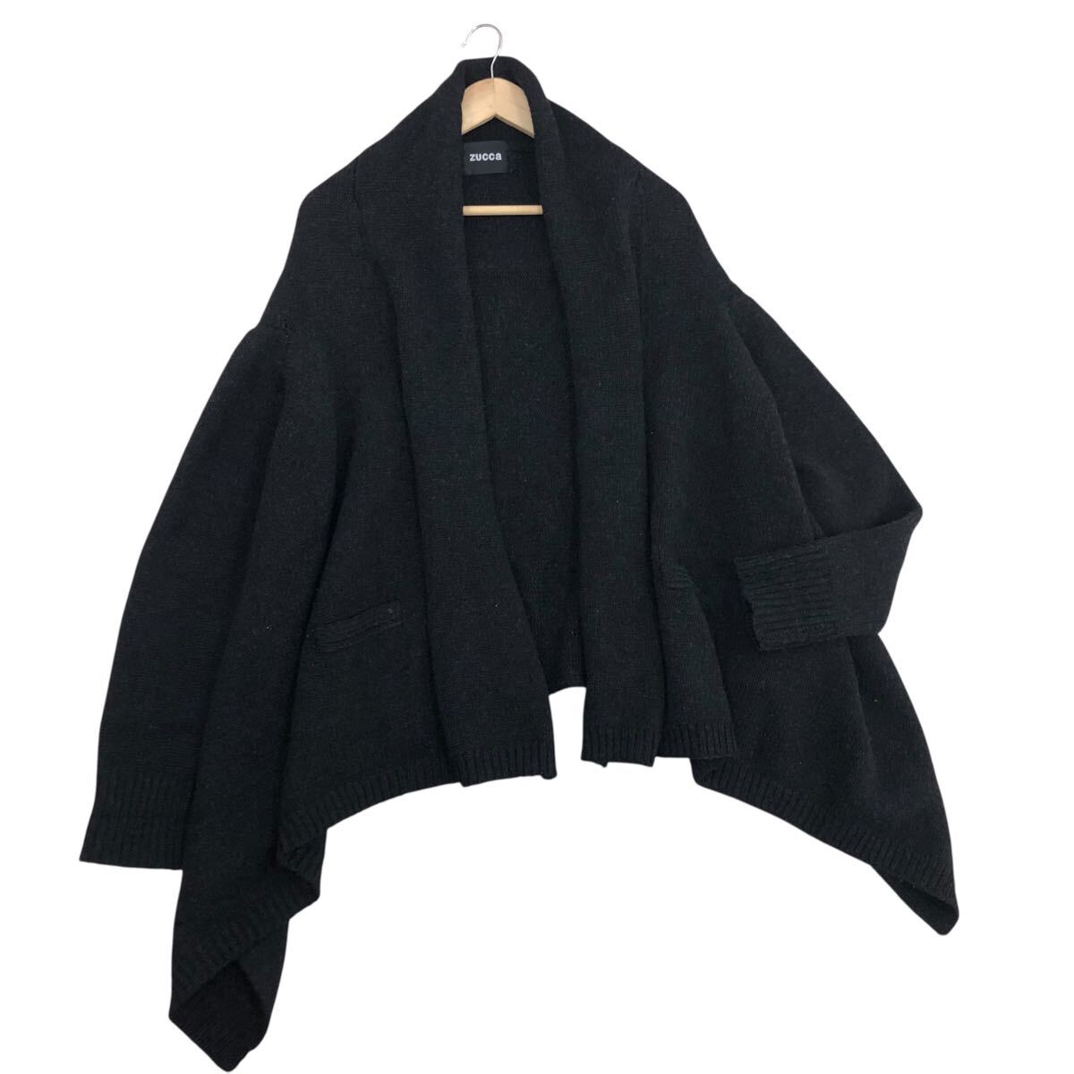 10m664-10 zucca ズッカ ウール 厚手 ロング 変形 カーディガン コーディガン 上着 羽織り トップス ブラック系 レディース M