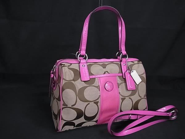 1円 ■美品■ COACH コーチ F24364 シグネチャー キャンバス 2WAY クロスボディ ハンドバッグ ショルダー 斜め掛け ベージュ系 FT1678