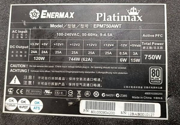 K36 EMERMAX 750W EPM750AWT Platimax PC用 電源BOX 電源ユニット