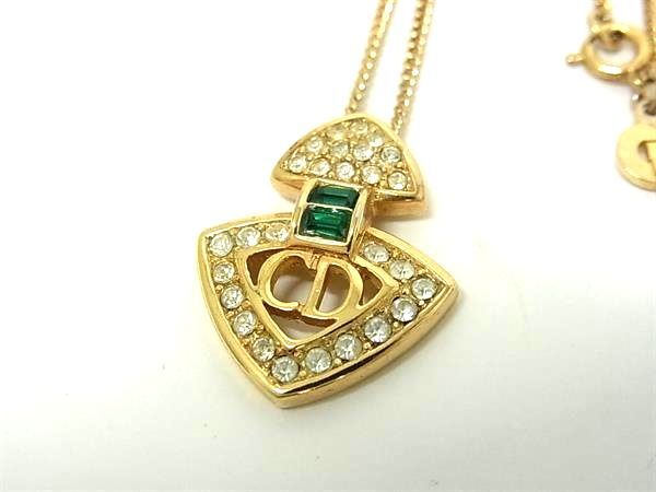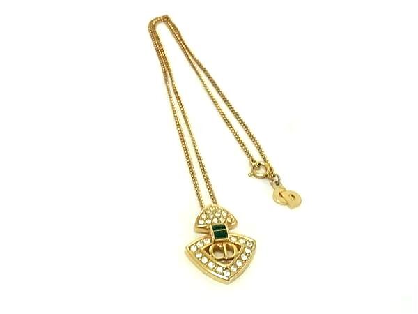 1円 ChristianDior クリスチャンディオール ヴィンテージ ラインストーン ネックレス ペンダント アクセサリー ゴールド系 FV1135