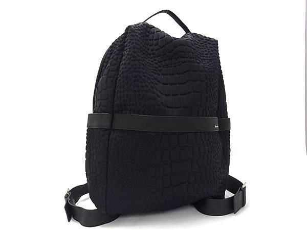 1円 ■極美品■ kawakawa カワカワ ナイロン クロコダイルエンボス リュックサック バックパック メンズ レディース ブラック系 FR5433