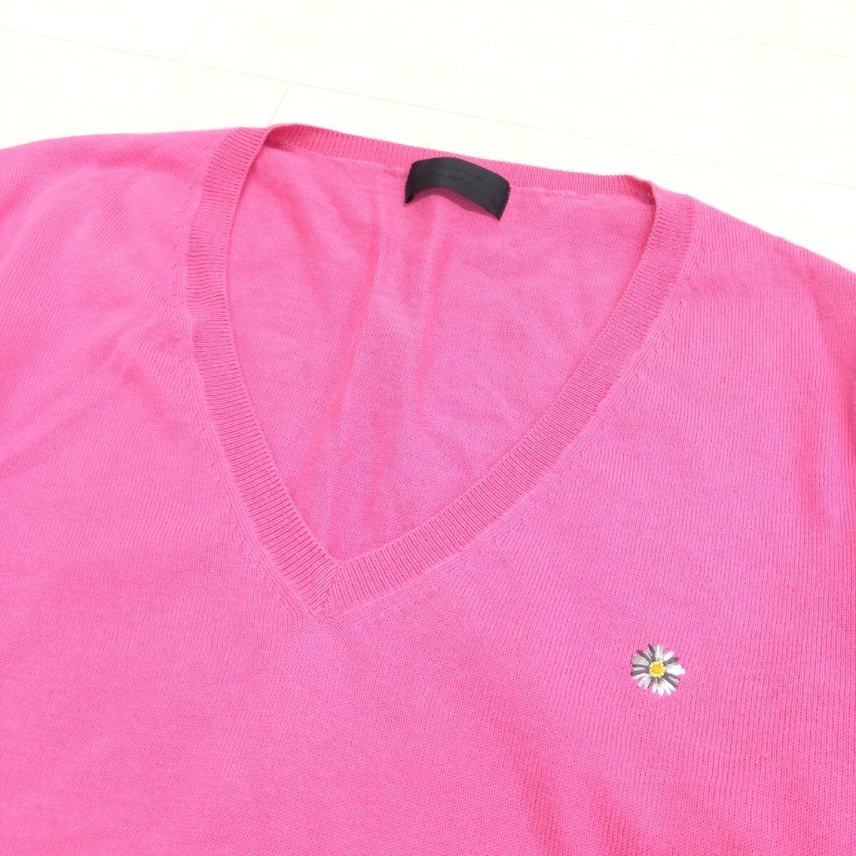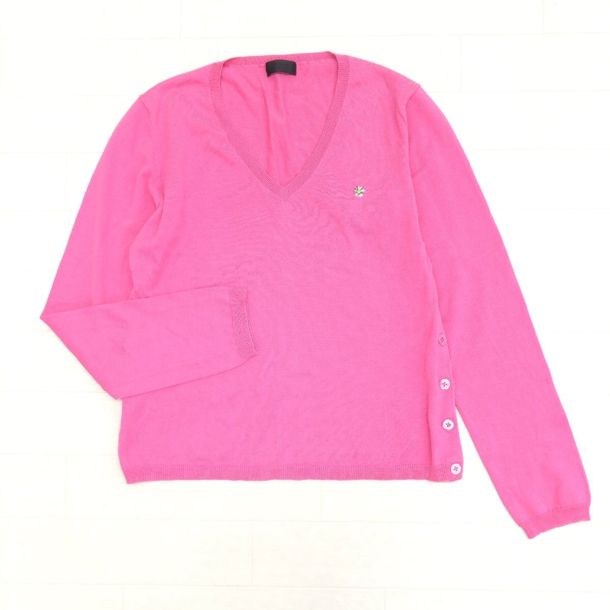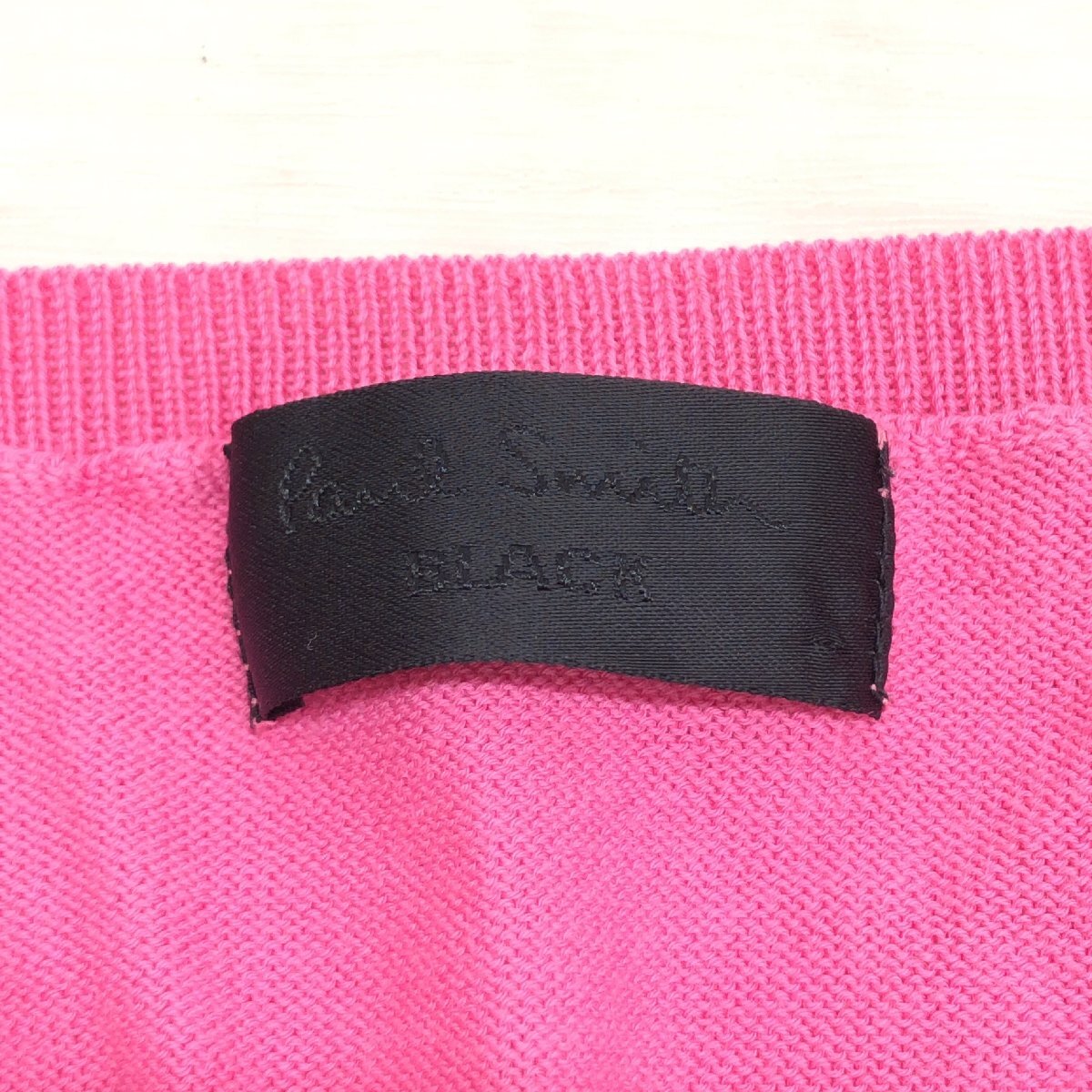 Paul Smith BLACK ポールスミス Vネック コットン ニット セーター M ピンク カットソー 長袖 ポイント刺繍 国内正規品 レディース 婦人