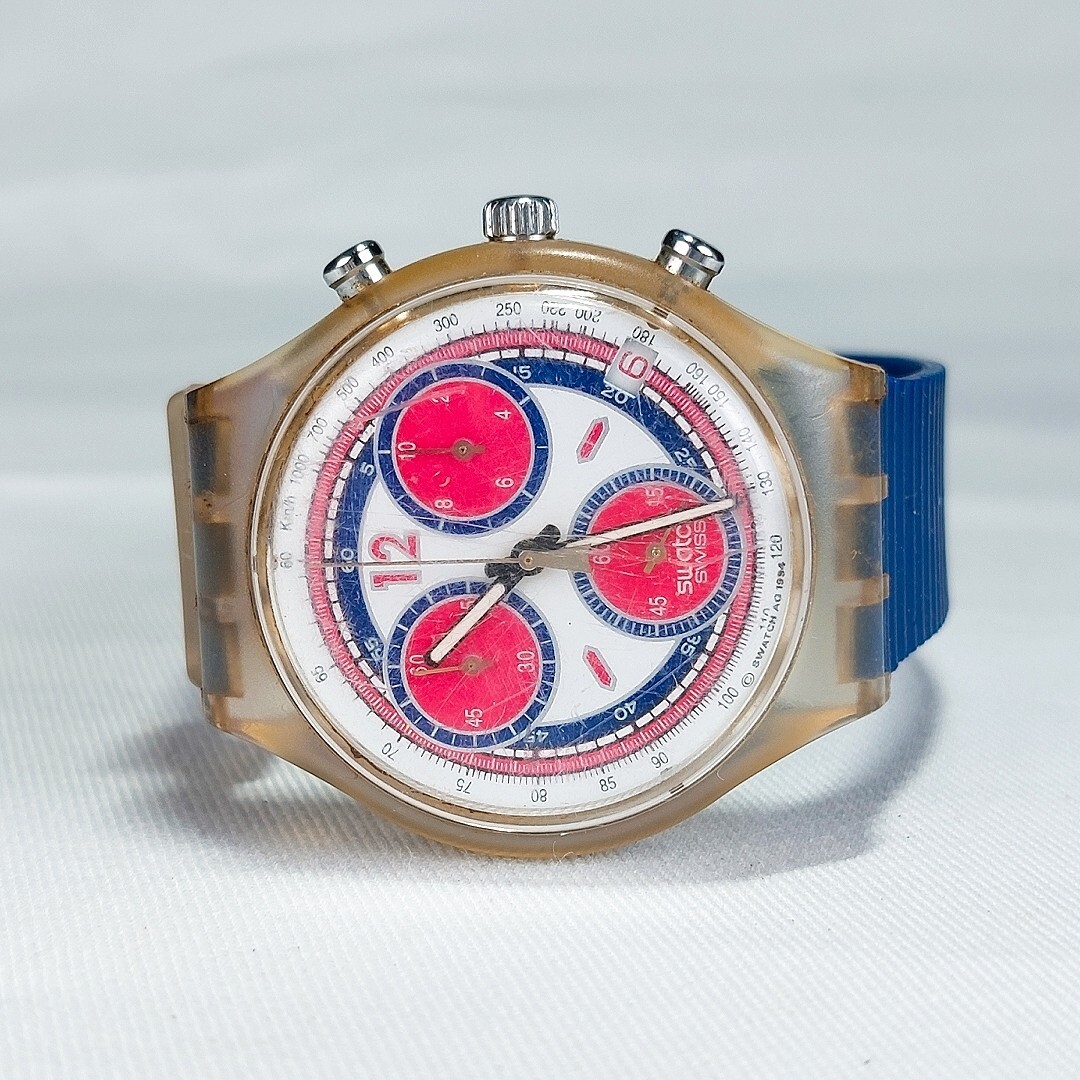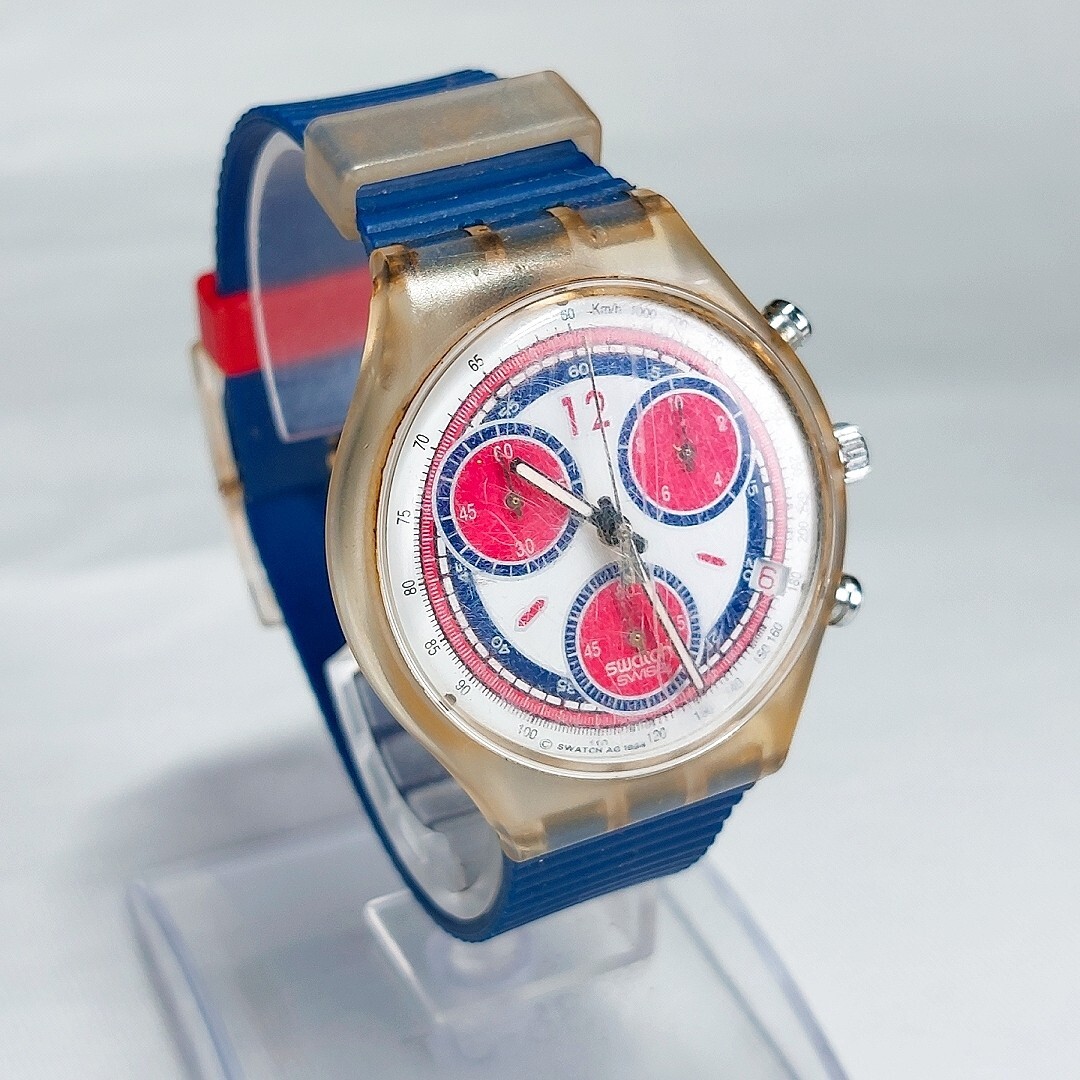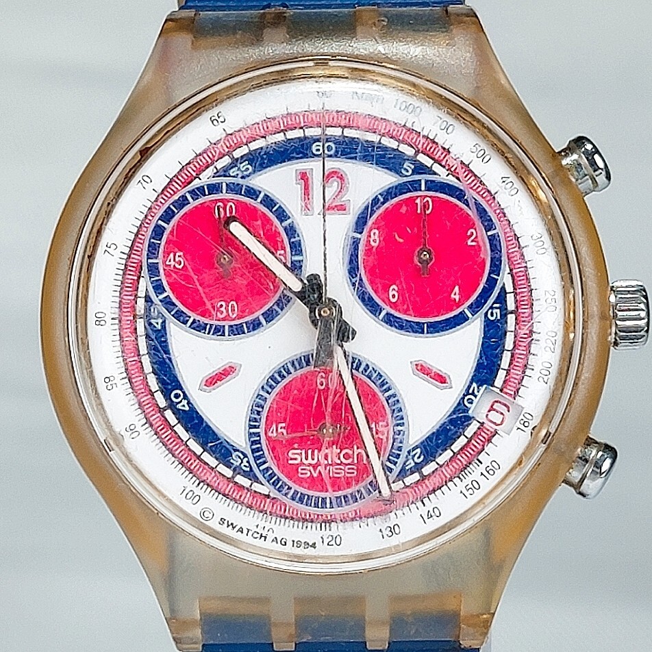 Swatch スウォッチ Sea Port 腕時計 SCK402 クオーツ ラウンド CHRONO クロノグラフ スケルトン カレンダー コレクション 動作確認済み