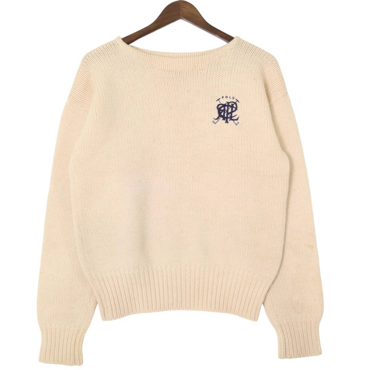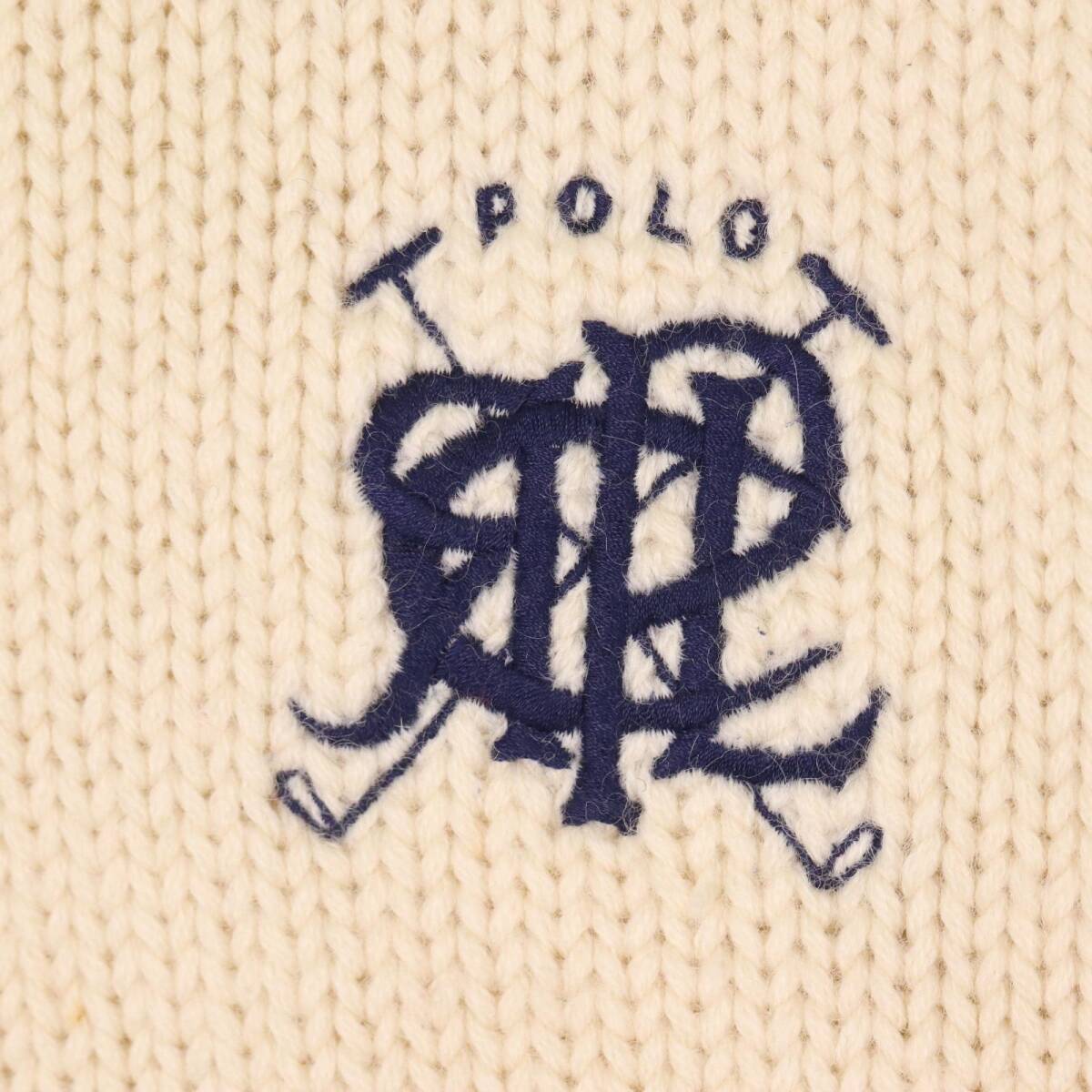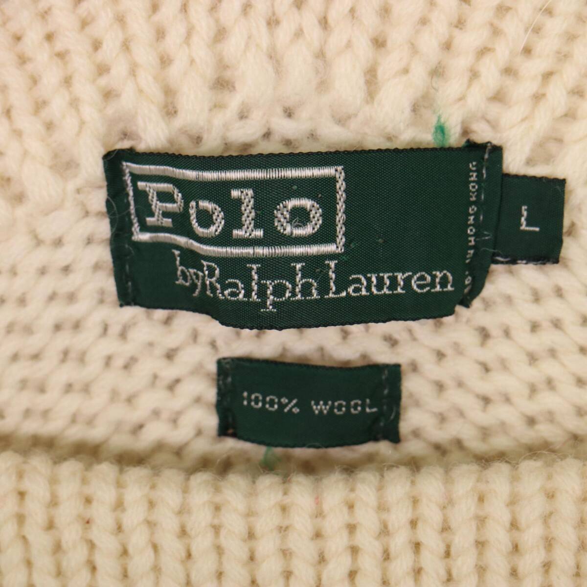 【商品管理番号】 A1489 【ブランド】 Polo by Ralph Lauren/ポロ ラルフローレン 【サイズ】 L 【実寸サイズ】 肩幅:約58.5cm 着丈:約57cm 身幅:約53.5cm 袖丈:約58.5cm 【主な素材】 表地 : ウール 【色】 アイボリー 【仕様】 90年代 ミドルゲージ 【状態】 特記事項: 全体的に細かな汚れと毛玉がございます。着用に問題はございません。 |
