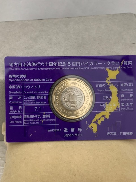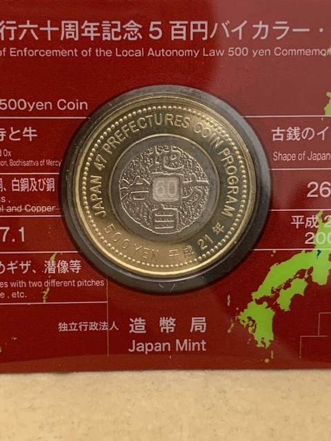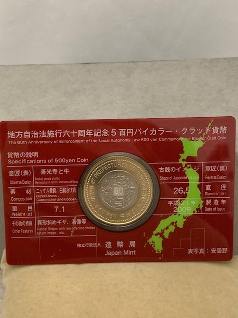 ☆1000円セール☆地方自治法施行六十周年記念5百円バイカラー・クラッド貨幣 500円銀貨 硬貨 長野 兵庫県 額面1000円◆33298