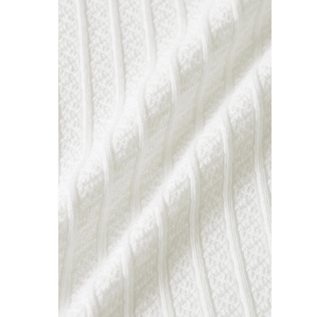 ■同トーンながらもストライプとジグザク模様を組み合わせた特徴のある素材感は、ソリッドな印象でさらりと着こなしやすい一着に仕上げています