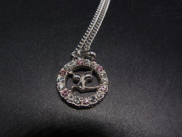 ■極美品■ courreges クレージュ ラインストーン ネックレス ペンダント アクセサリー レディース シルバー系×ピンク系 DH0040