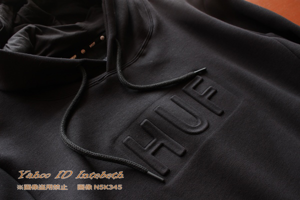 新品■HUF スエット パーカーXL 黒■メンズ L~XL エンボス ロゴ マイクロボア 裏起毛 フード トップス プルオーバー トレーナー高品質