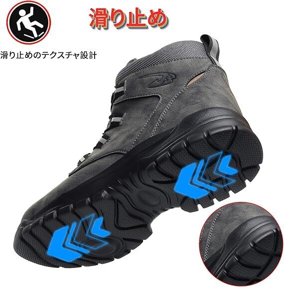 【軽量&耐摩耗ソール】安全靴ブーツのインソールは高弾性の綿で設計され、通気性があり、柔らかく、軽量です。靴底は丈夫なゴムとプラスチックを採用し、磨耗に強く、靴底は滑りにくいテクスチャーで設計され、濡れた路面を歩く時の安全性を確保します。