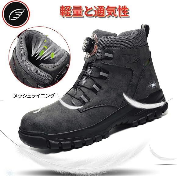 安全靴 作業靴 防水 メンズ ワークブーツ ハイカット ダイヤル 鋼先芯 セーフティシューズ 四季兼用 JHC0014 グレー 27cm