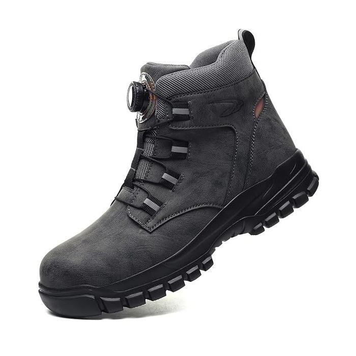 【ダイヤル式安全靴】ワークブーツにはダイヤル式ロックシステムが搭載されており、靴ひもを結ぶ必要がなくても解放できます。片手で簡単に着脱と調整ができます。