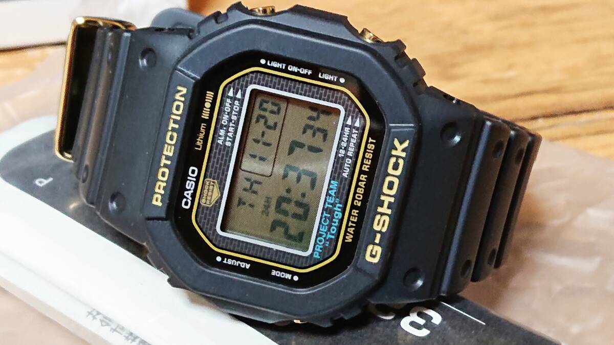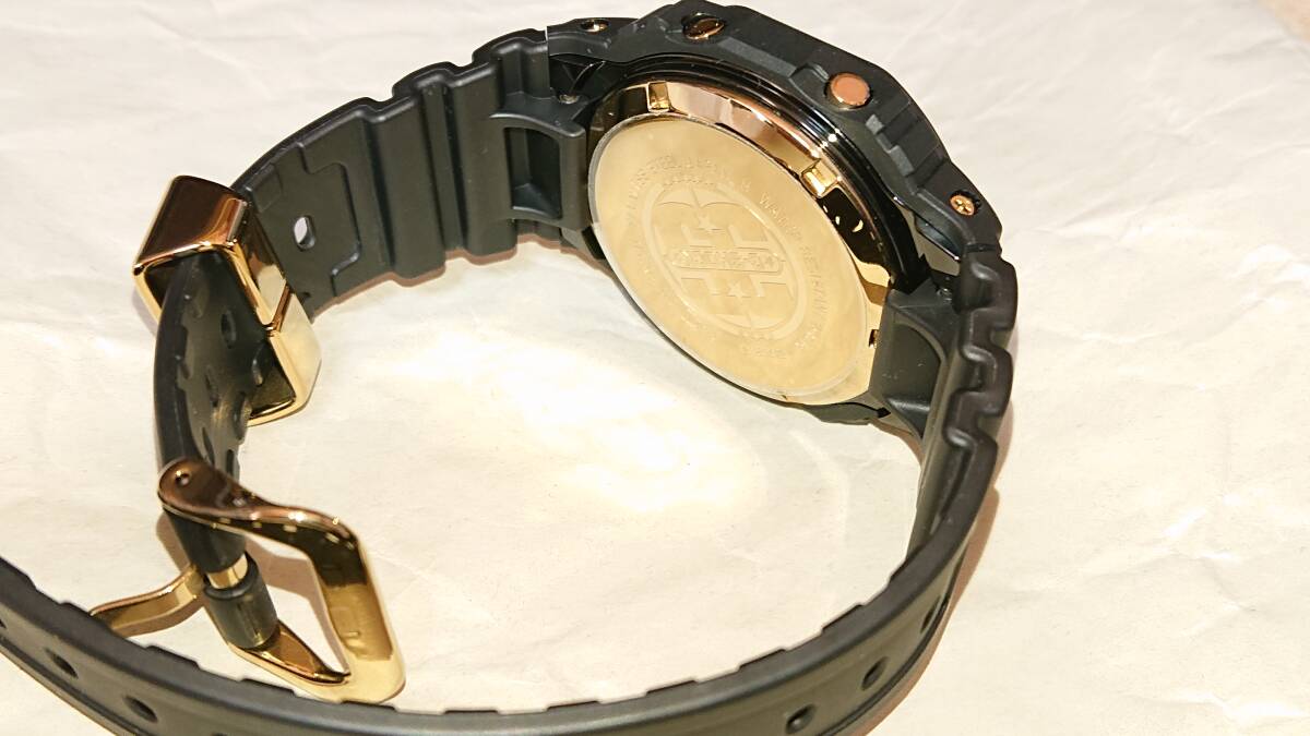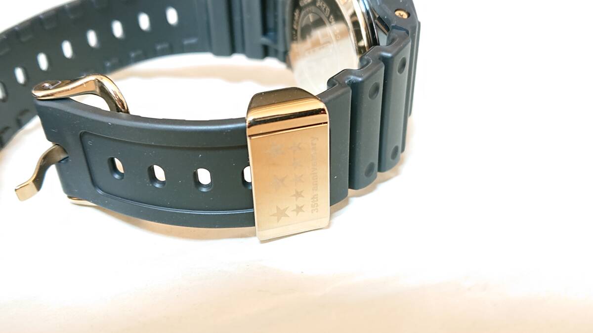 2018年4月にG-SHOCK誕生35周年を記念して発売されたゴールドをアクセントにした限定モデル。ベースには初代G-SHOCKのディテールを継承するDW-5000を採用。ベゼルとバンドにはG-SHOCKのブランドカラーであるブラックを配色し、文字盤やロゴ色、サイドボタンには、初代G-SHOCKの色違いである「DW-5000C-1B」のゴールドカラーを再現。遊環には35周年を意味するスターマークと「35th anniversary」の文字がデザインされています。裏蓋はスクリューバック仕様となっており、35周年記念ロゴが刻印されています。