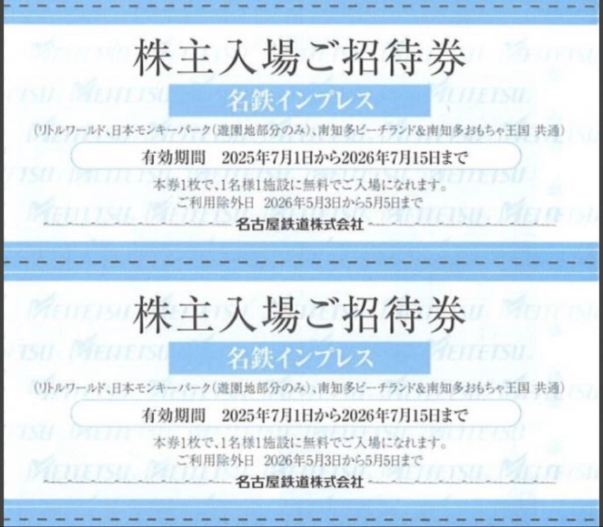 名古屋鉄道(名鉄)の株主優待券の共通招待券になります。