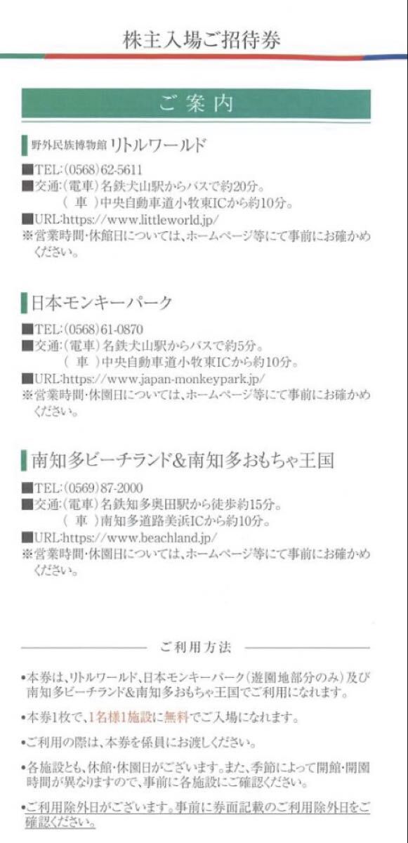 ◎リトルワールド・日本モンキーパーク・南知多ビーチランド&南知多おもちゃ王国のいずれかで使用することができます。