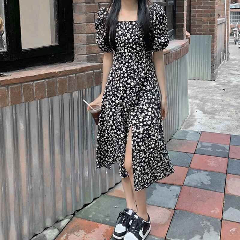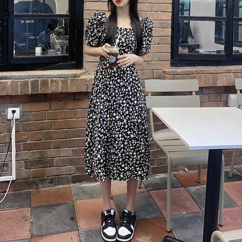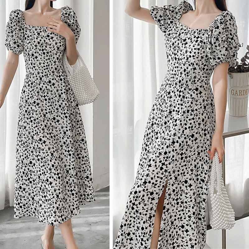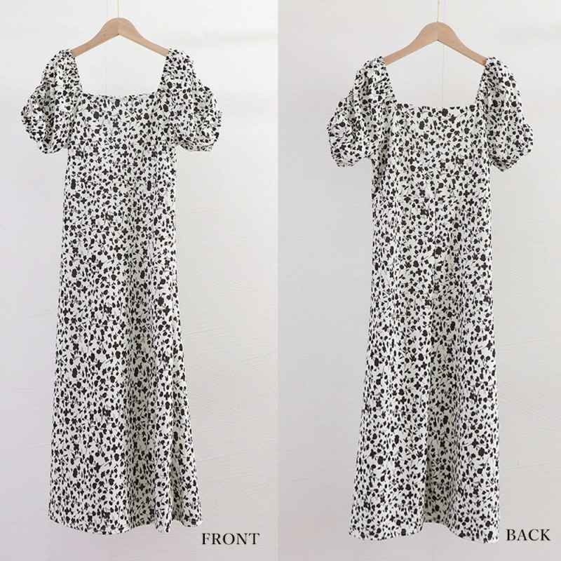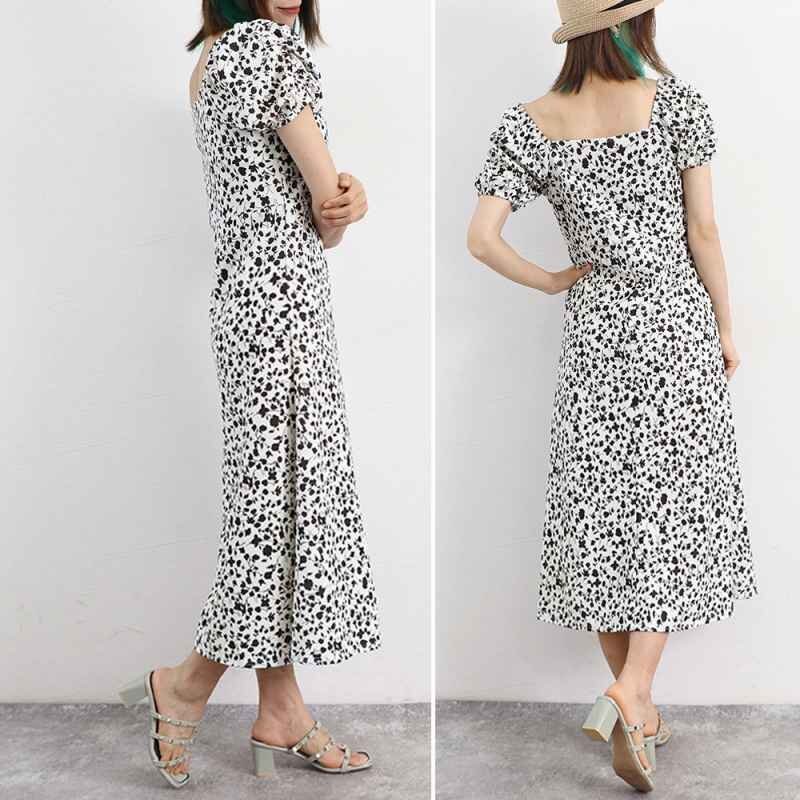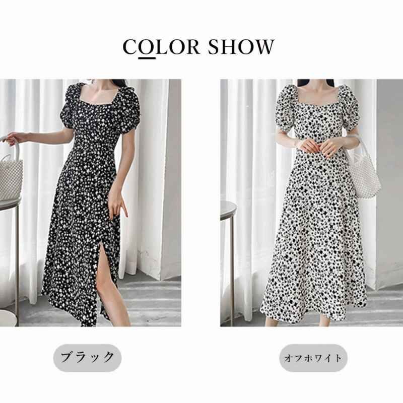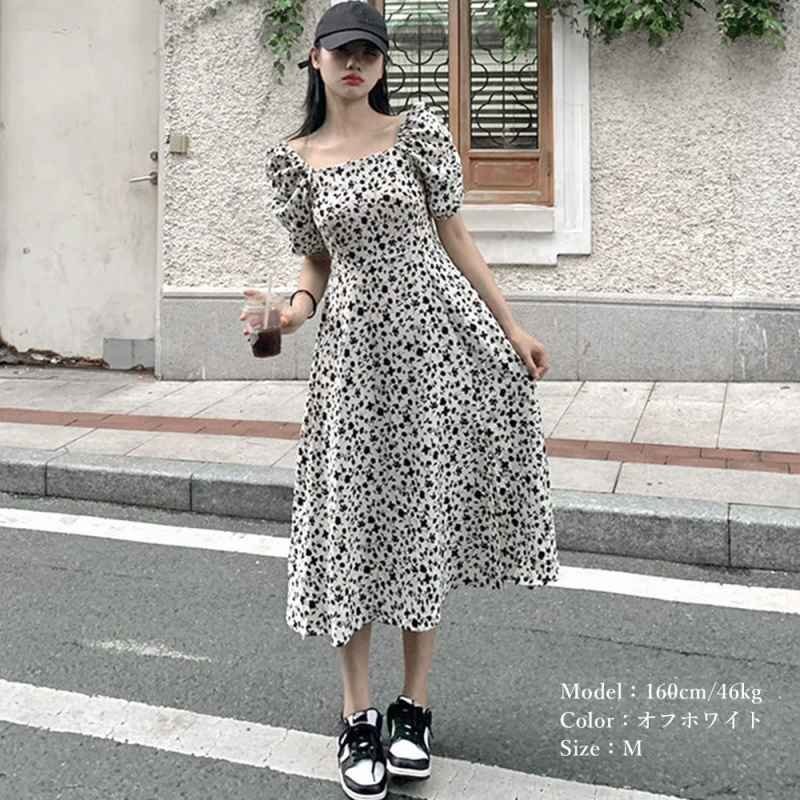 全体に散らばる小花柄が春夏らしい!スクエアネック半袖ワンピース
