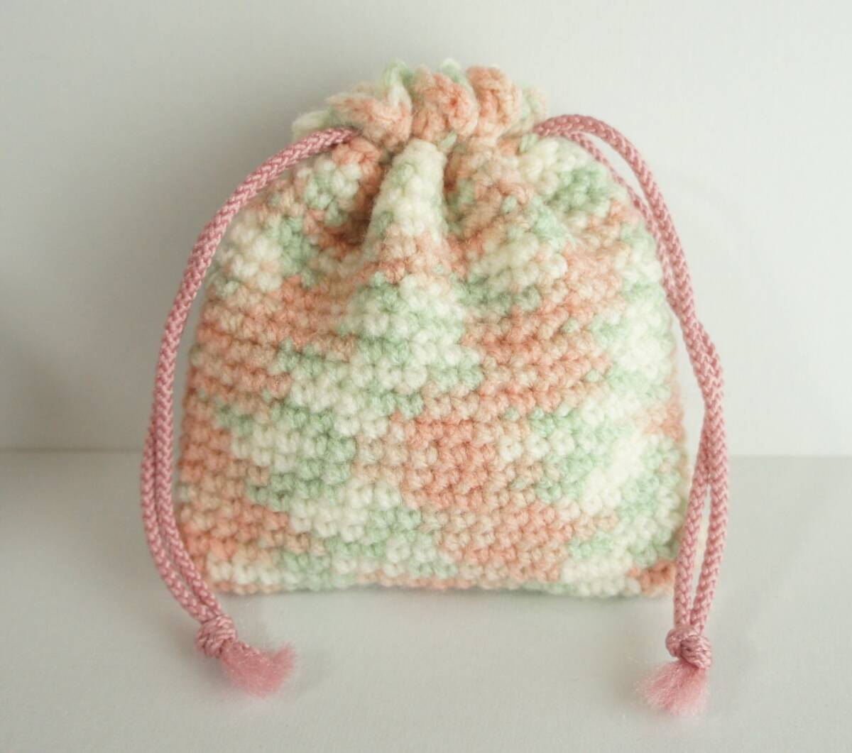 ハンドメイド 巾着 毛糸 かぎ針編み 手編み