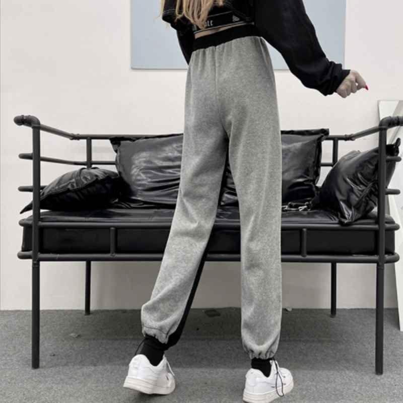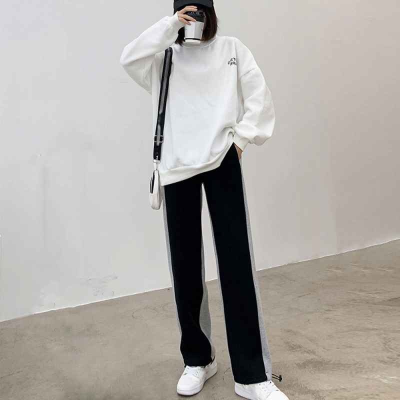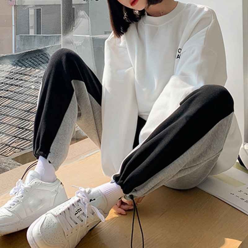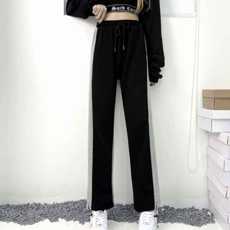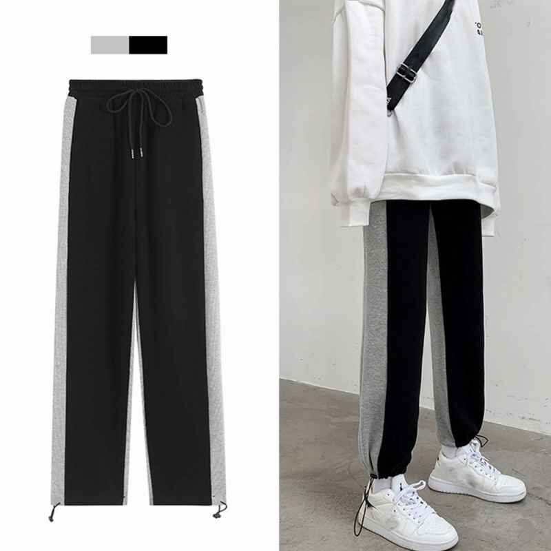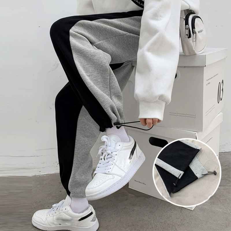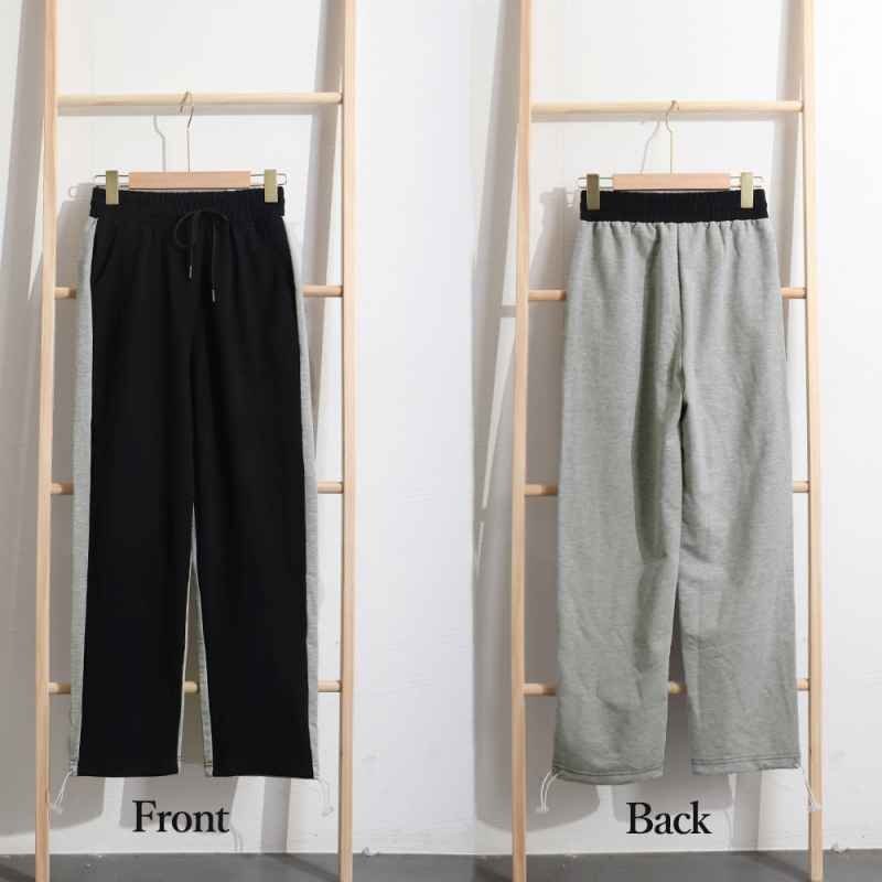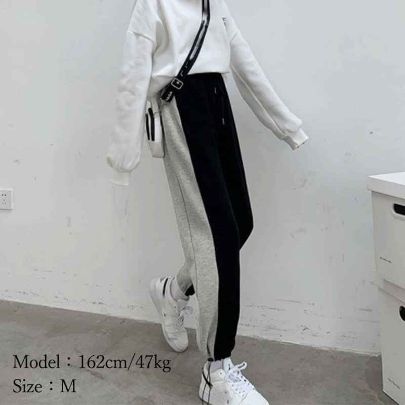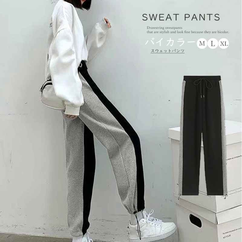バイカラー仕様なのでスタイリッシュで視覚上では細見えするドローストリングスウェットパンツ