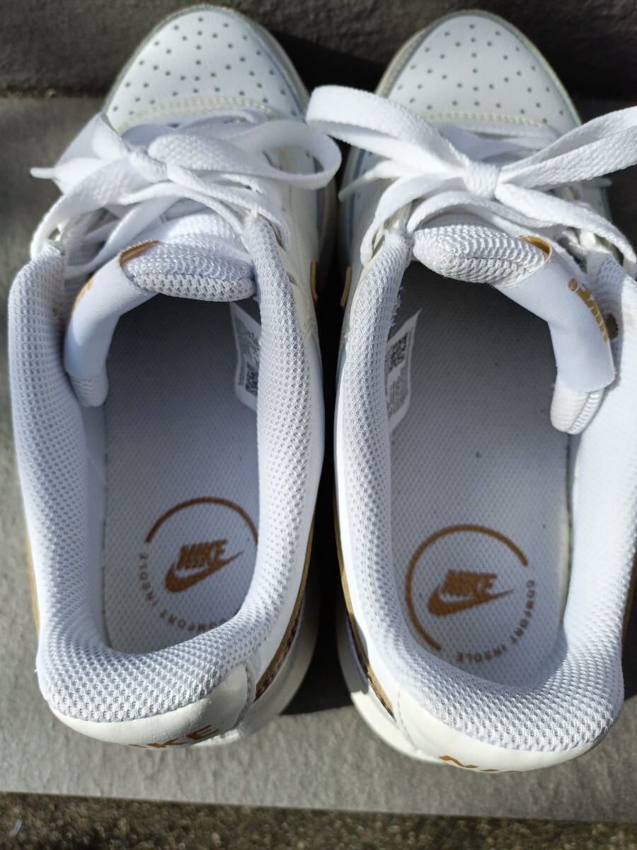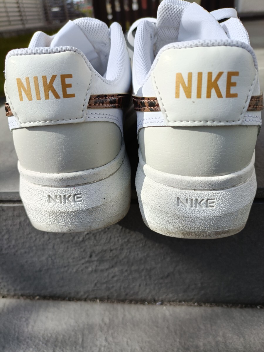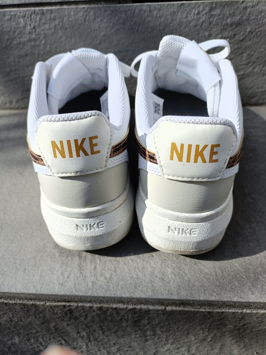 ローカット、ホワイトにヒョウ柄のスオッシュがお洒落なデザインです。